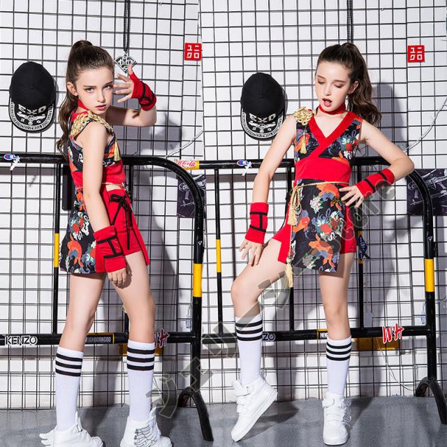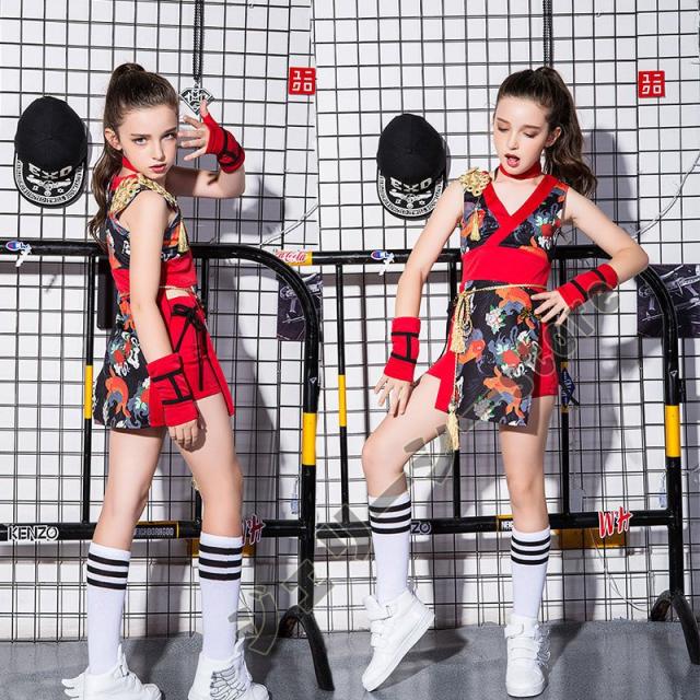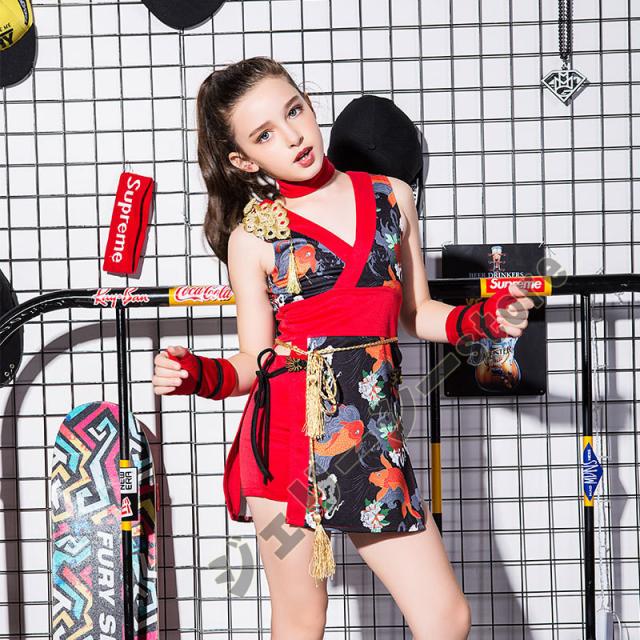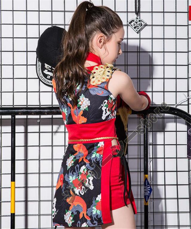 キッズ ダンス衣装 派手 チャイナドレス 花柄 子供服ステージ チア チアガール 民族風 ヒップホップ 舞台衣装 ファッション