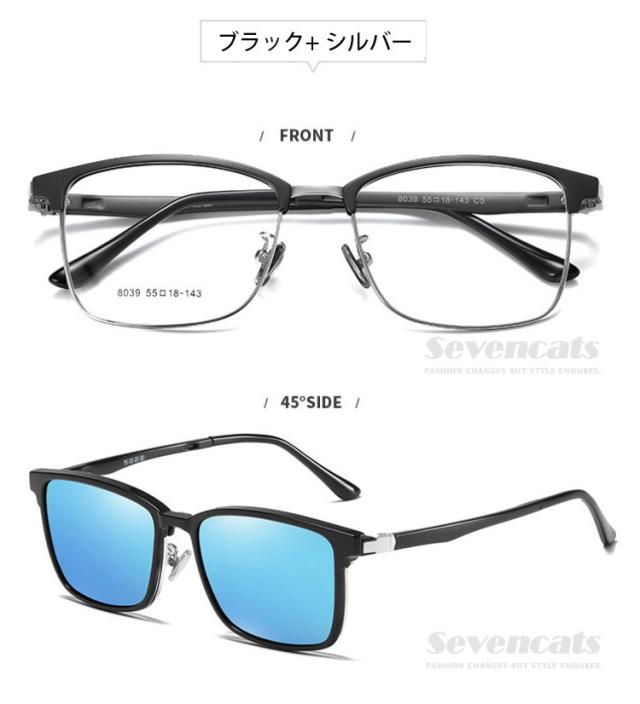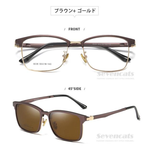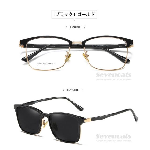 伊達メガネ メンズ 度なし UVカット 偏光 サングラス 磁石 サーモント型 レトロ メンズ/レディース兼用