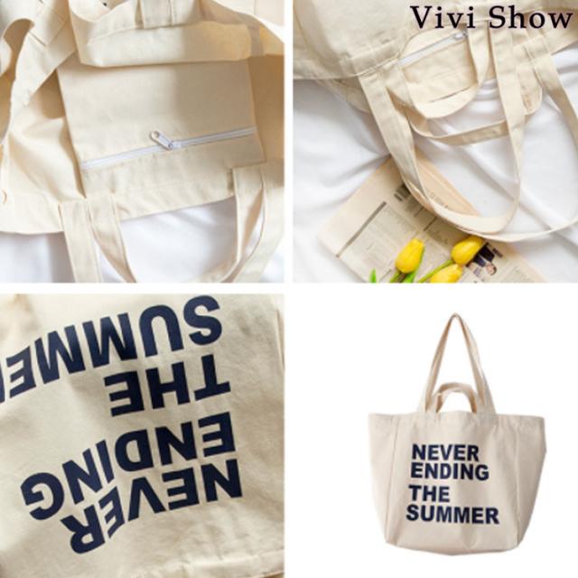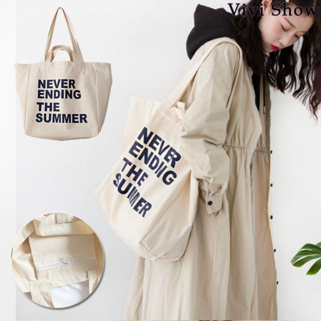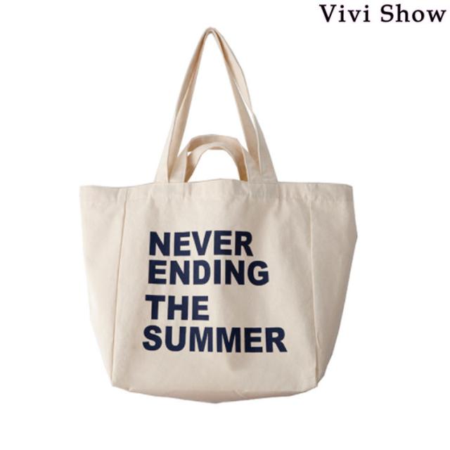 キャンバスバッグ レディース キャンバストートバッグ ロゴ SUMMER 大容量 可愛い エコバッグ 帆布