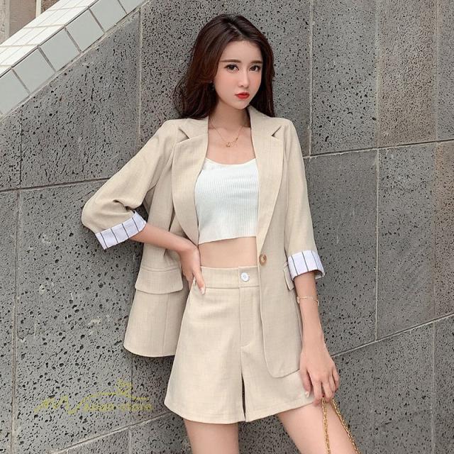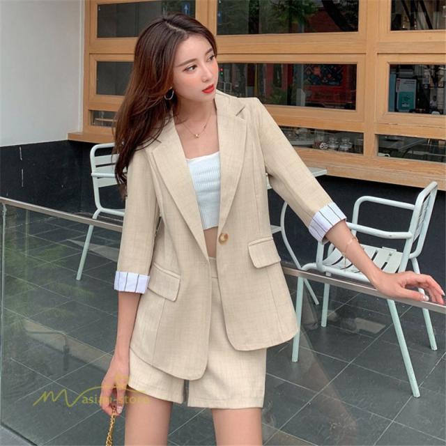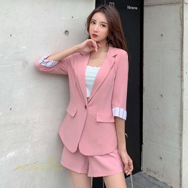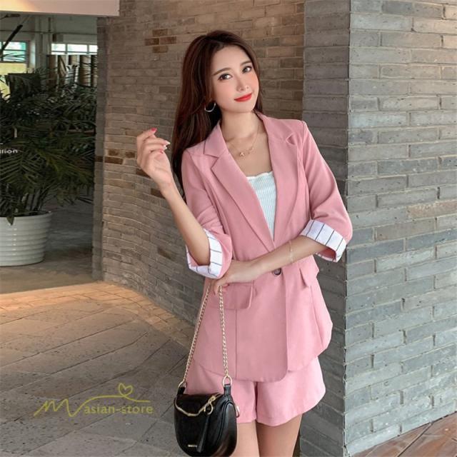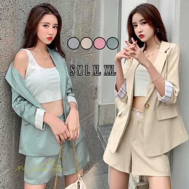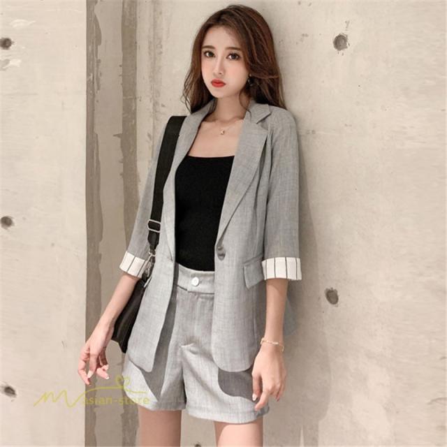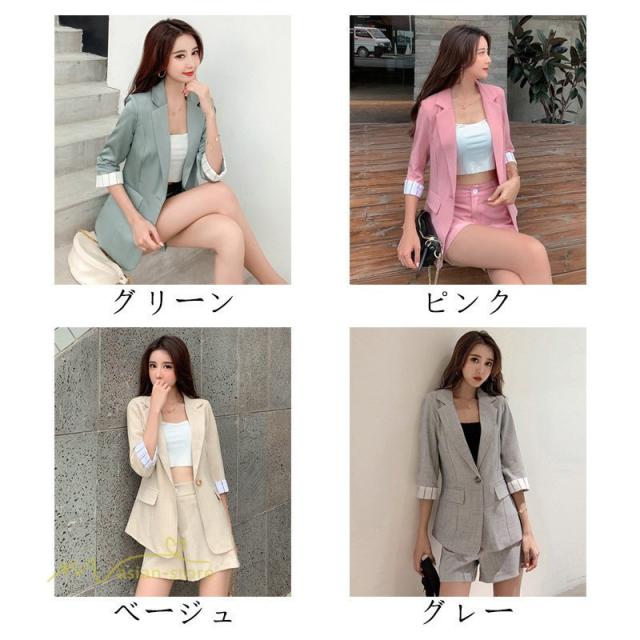 パンツスーツ スーツ レディース セットアップ フォーマル オフィス ビジネス かっこいい 事務服 半袖 2点セット ショットパンツ 韓国風 入学式 入園 2020作