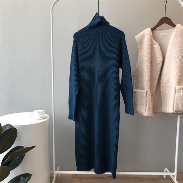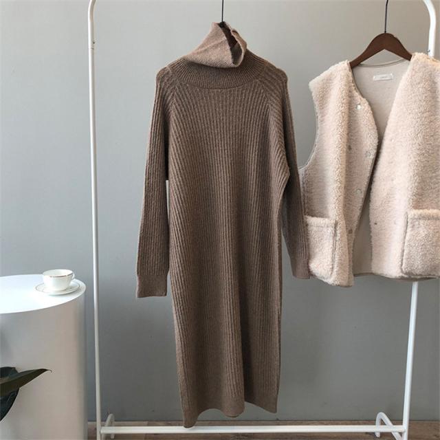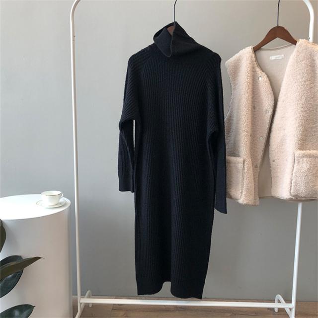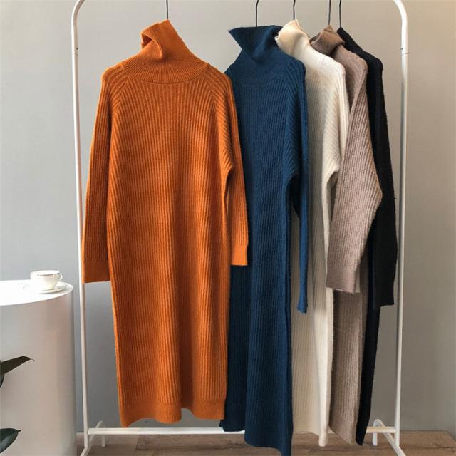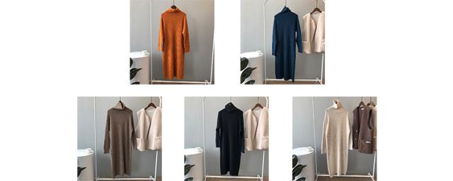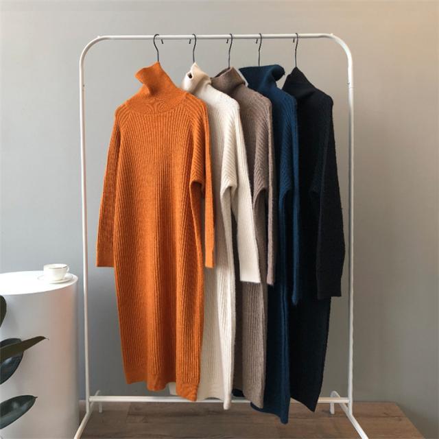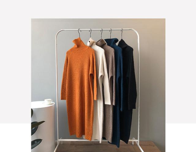 ニットワンピース レディース ミモレ丈ワンピース 21春 ハイネック 薄め ワンピース タイト 上品 5色