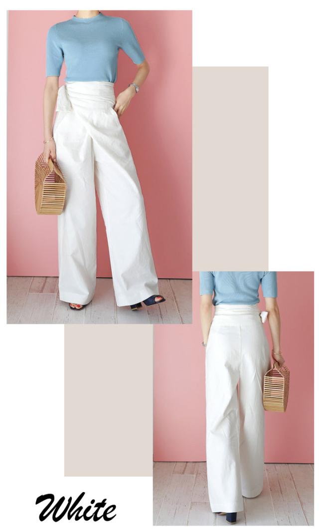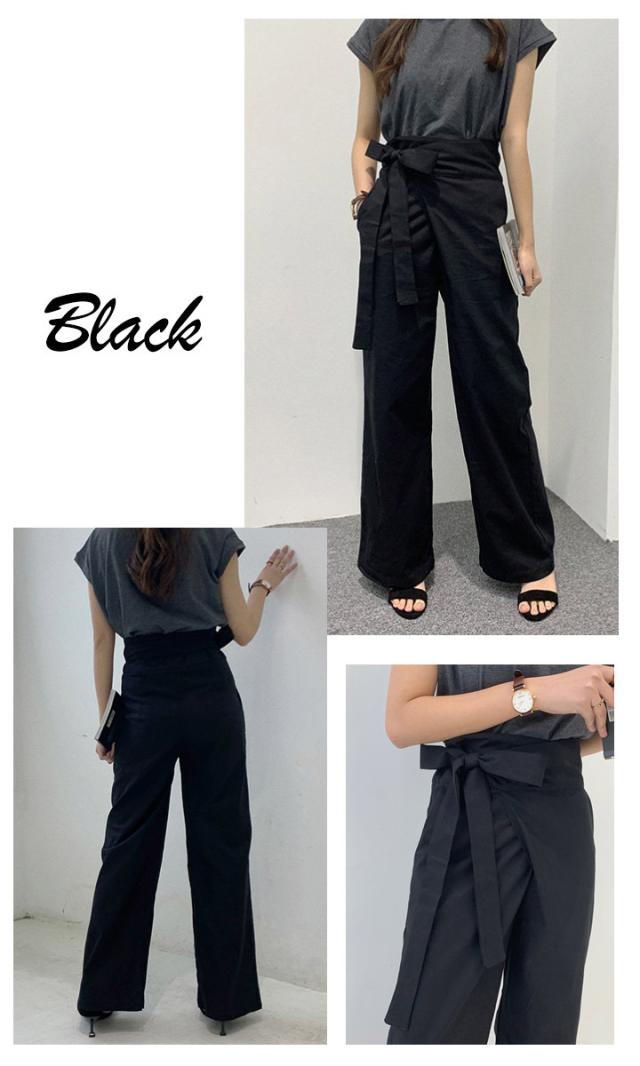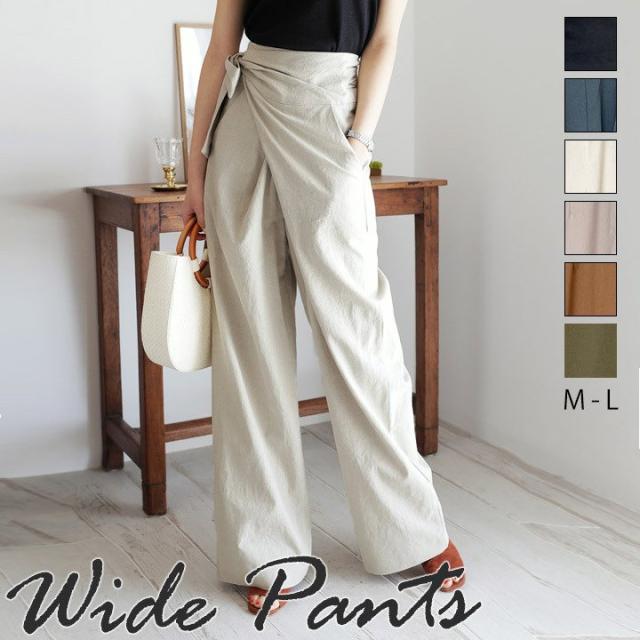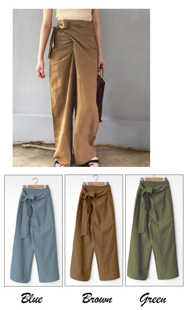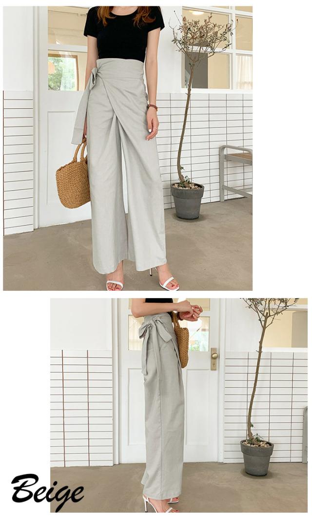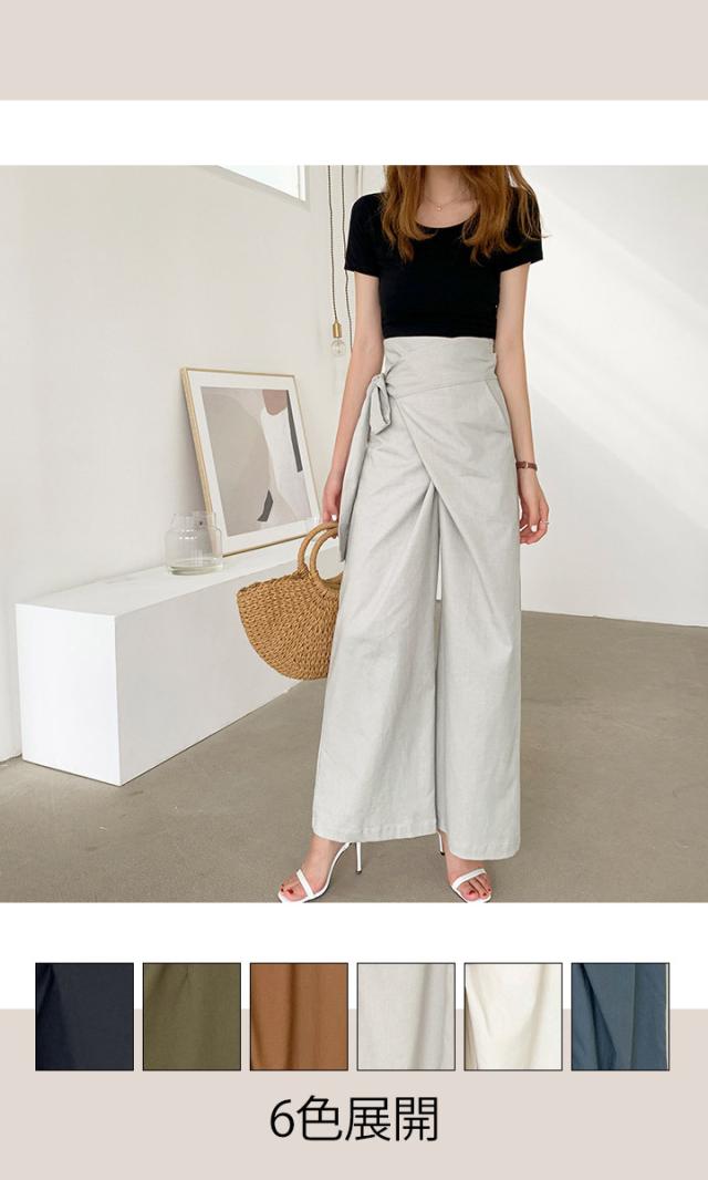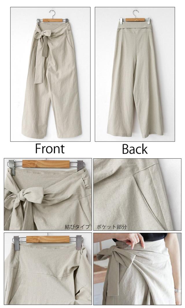 ハイウエストパンツ ワイドパンツ ガウチョ ガウチョパンツ リボン結び ウエストリボン パンツ ボトムス レディース ゆったり 体型カバー【メール便 】