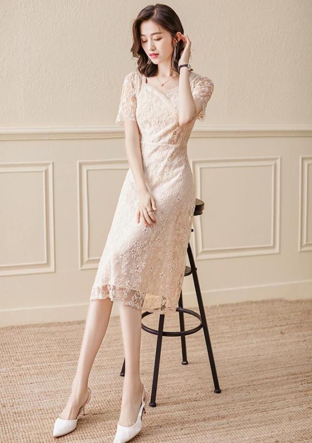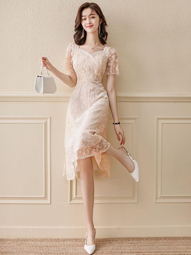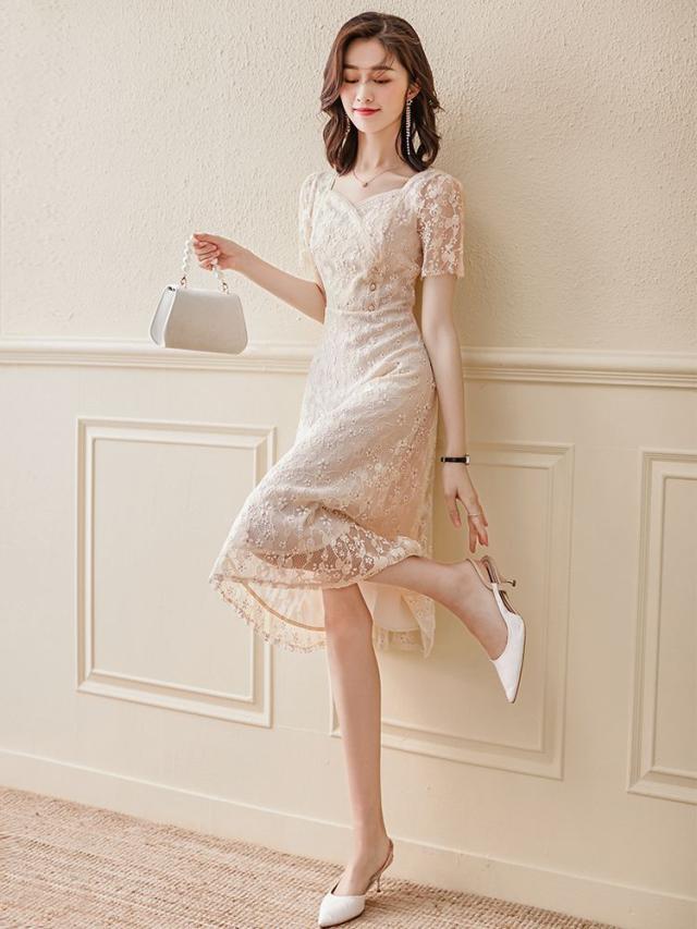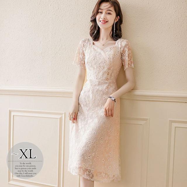 ドレス 半袖 小花柄 とろみ ハイウエスト ロング丈 ロマンティック 甘め シンプル 上品 美人 ガーリー 食事会 お出かけ フェミニン 可愛い