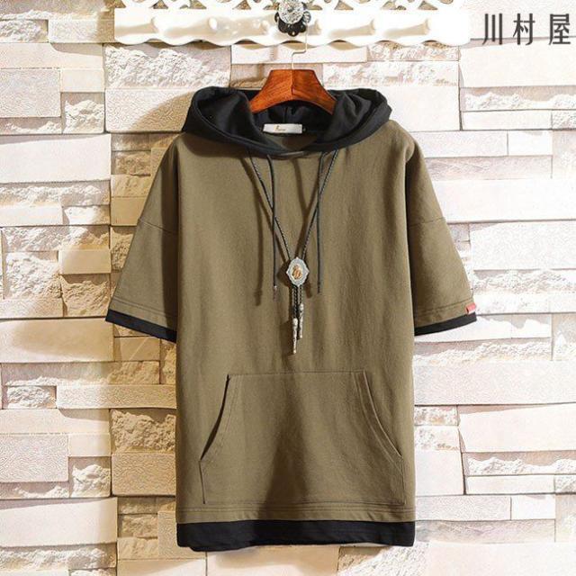 フード付きTシャツ メンズ 半袖 コットン Tシャツ 大きいサイズ カジュアルTシャツ メンズ フード付き メンズファッション 5色