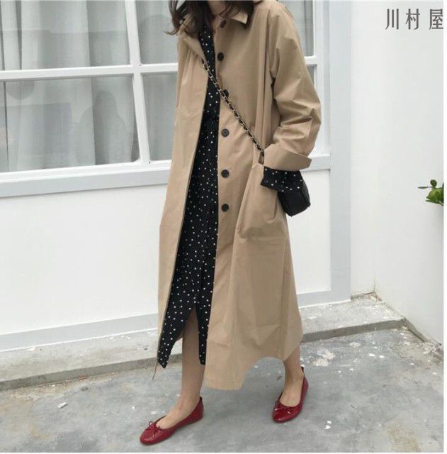 トレンチコート レディース ロングジャケット スプリングコート ライトアウター 秋服 韓国風 カジュアル オーバー 30代 40代 50代 おしゃ