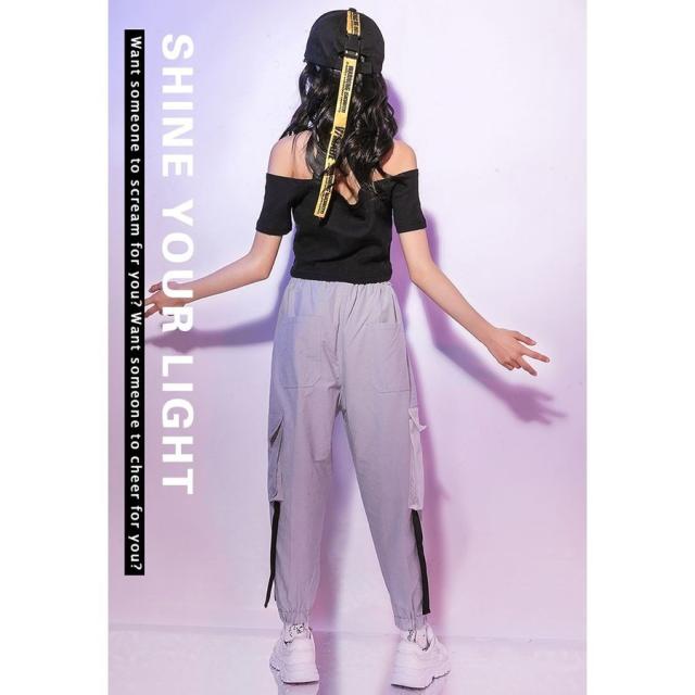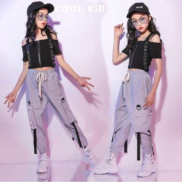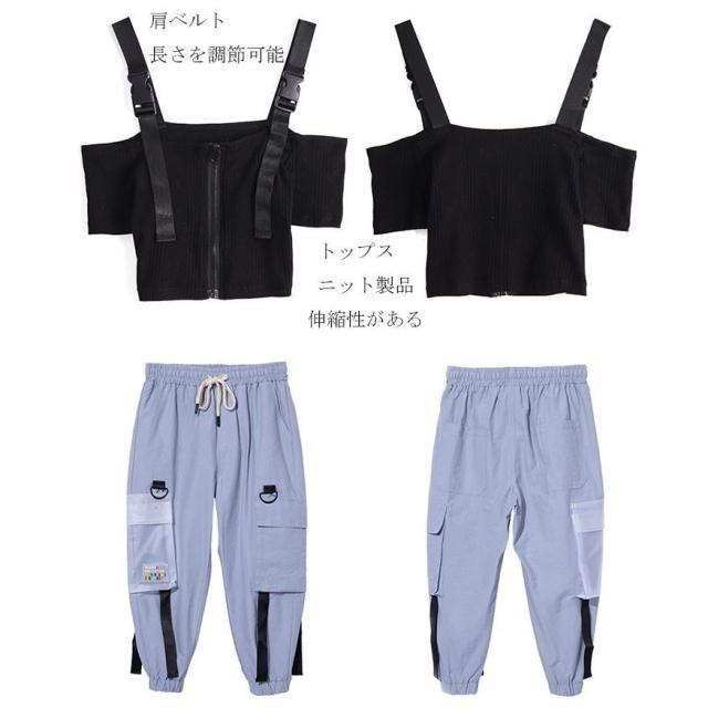 キッズダンス衣装 ヒップホップ セットアップ 上下 トップス ダンスパンツ ズボン 子供服 ガールズ チア 女の子 練習着 体操服 団体