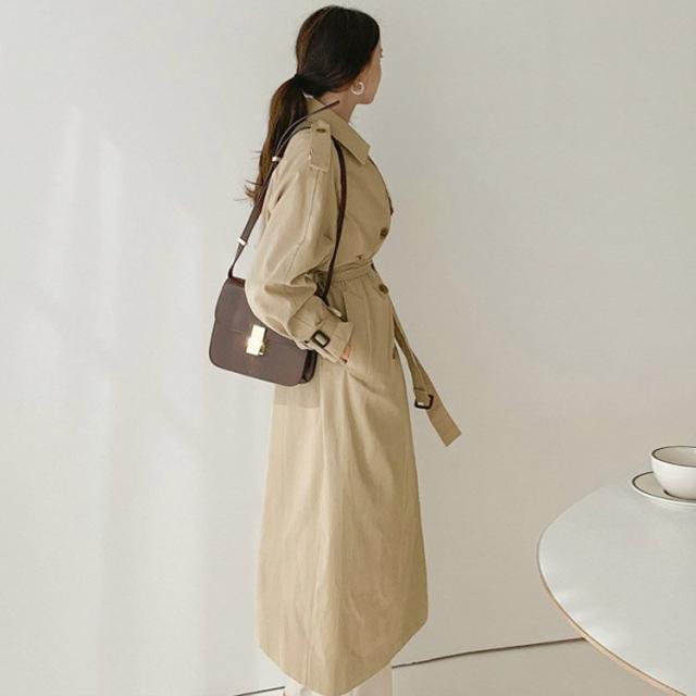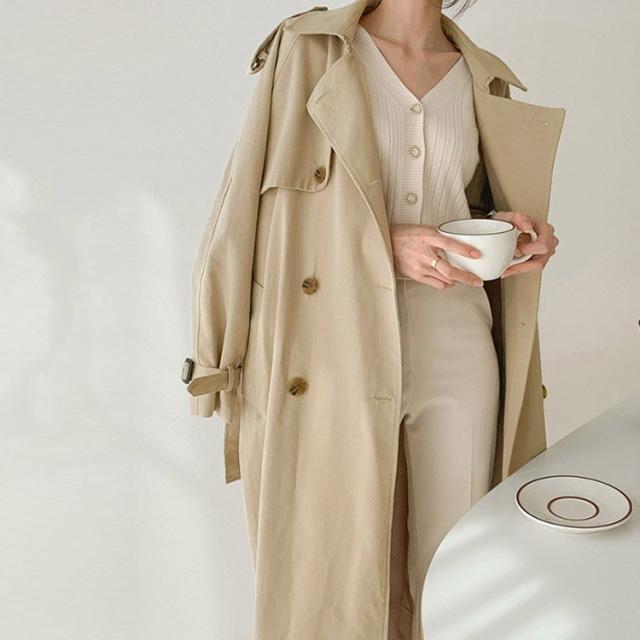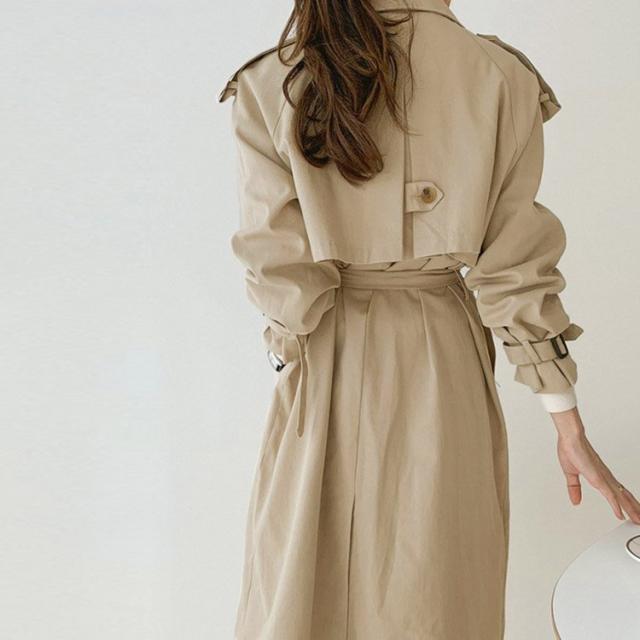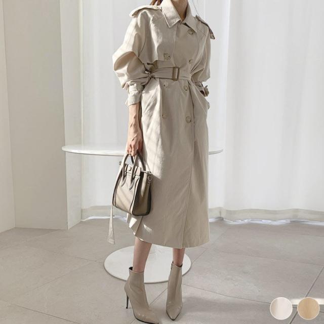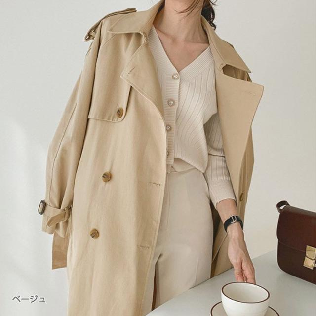 トレンチコート レディース セミロング丈 エレガント ベルト 切り替え セミロングコート ベージュ 白 韓国ファッション