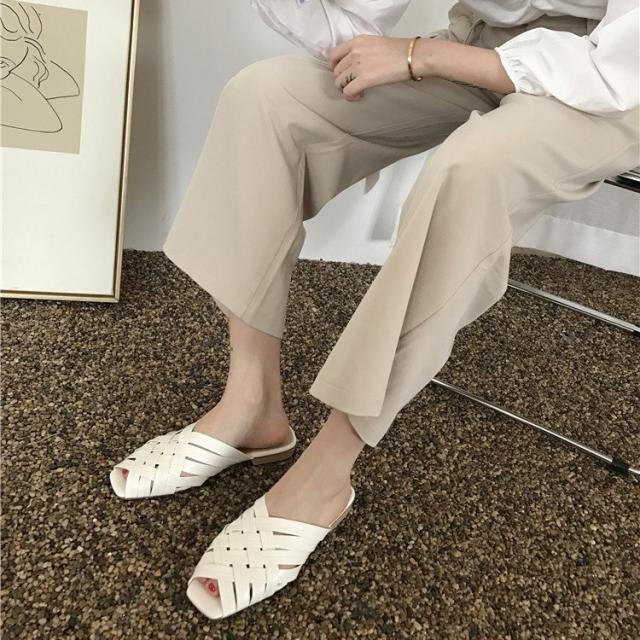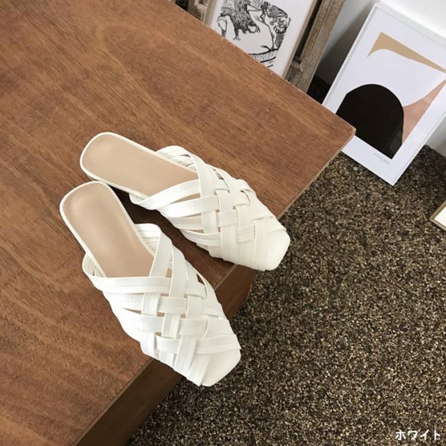 サンダル 編み レディース フラットサンダル カジュアル シースルー クロス 白 ベージュ 黒 韓国ファッション