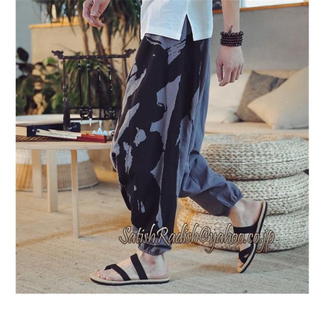 サルエルパンツ メンズ 春 夏 ジョガーパンツ 柄もの 個性 人気 オシャレ 九分丈 ゆったりめ 亜麻 カジュアル 旅行 部屋着 紐ベルト 大きいサイズあり