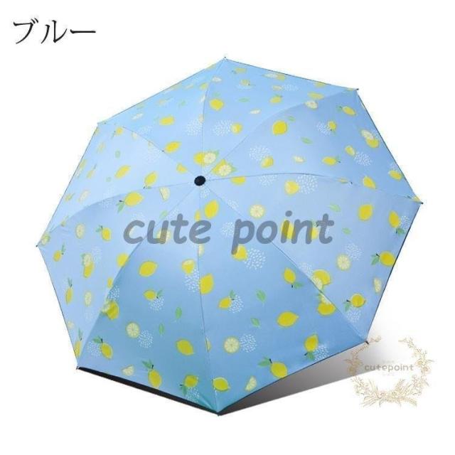 折りたたみ傘 晴雨兼用 手動開閉 日傘 撥水加工 折り畳み傘3段折り レモン柄高強度 耐久性の高い8本骨 大きめサイズ かさ カサ 耐強風 遮熱遮光 軽量 UVカット