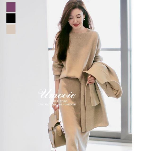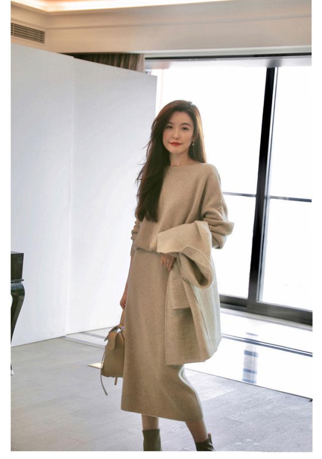 ニットセットアップレディースセータースカートスーツ 厚手 秋セーターゆったりドロップショルダー スカート ボトルネック ロング ニットスカート