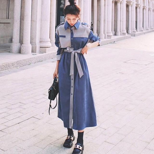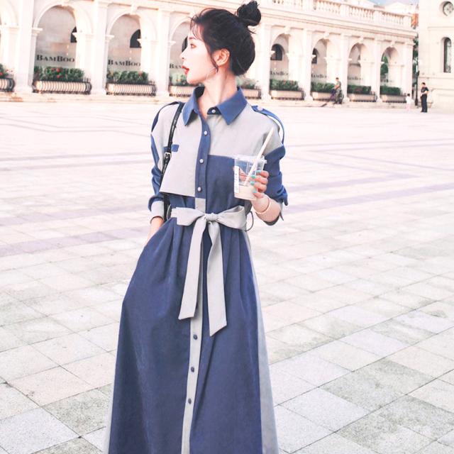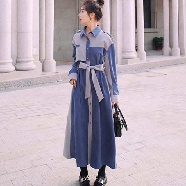 シャツワンピース ロング レディース 長袖 ミモレ丈 ワンピース ウエストマーク 着やせ おしゃれ ワンピース 体型カバー 春秋