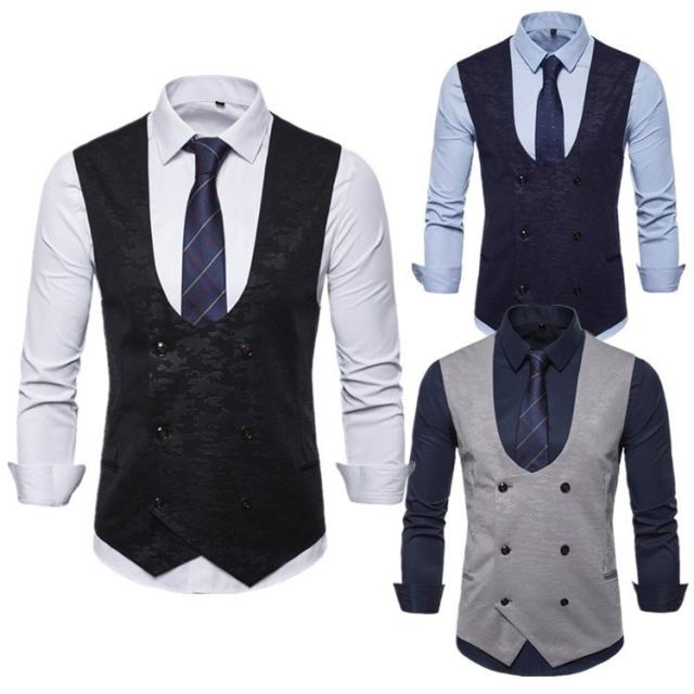 ジレ ベスト メンズ フォーマルベスト 春秋 紳士服 スーツベスト ビジネス 結婚式 パーティー シャツ 通勤 オシャレ スリム ダブルボタン