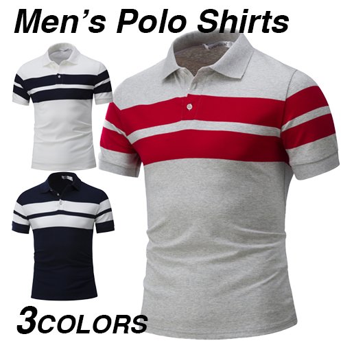 ポロシャツ メンズ 半袖 無地 ボーダー柄 半袖ポロシャツ トップス ゴルフウェア ゴルフ おしゃれ