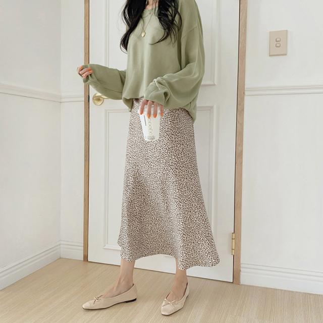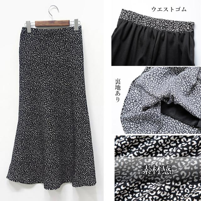 ヒョウ柄 フレアスカート レディース レオパード ミモレ丈スカート ハイウエスト ボトムス ロングスカート Aライン 着回し