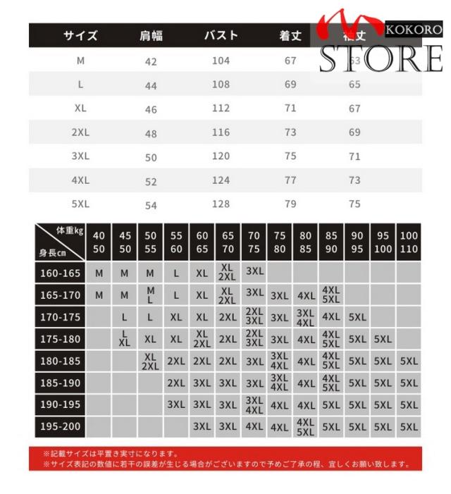 | サイズ | M L XL 2XL 3XL 4XL 5XL |