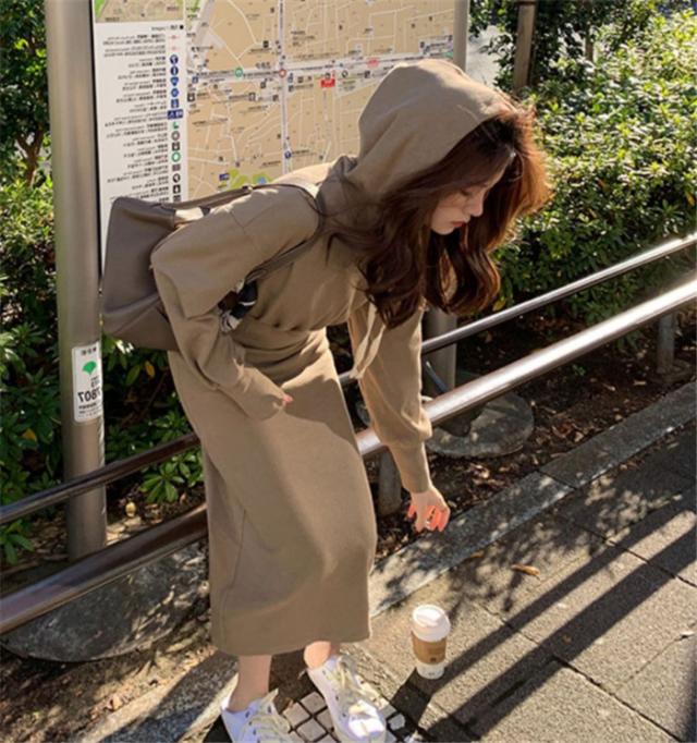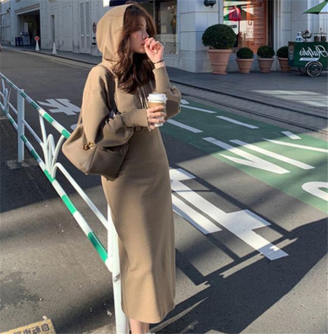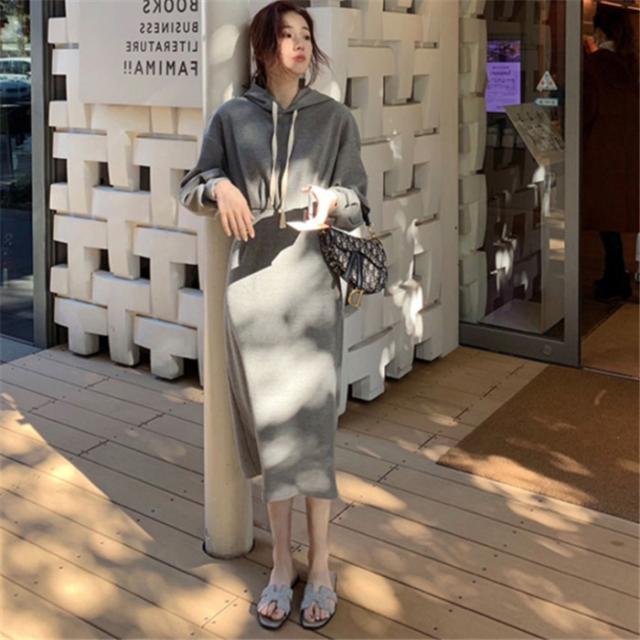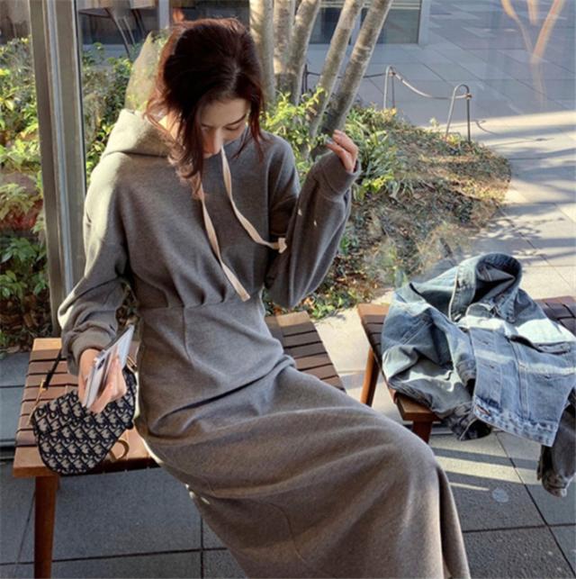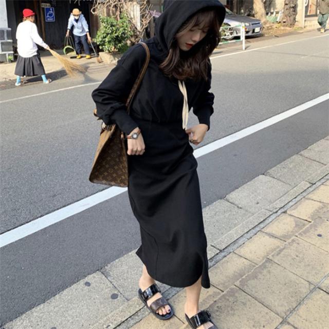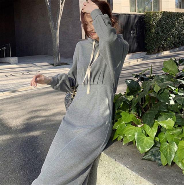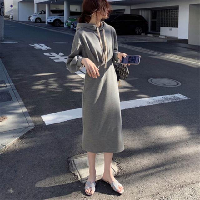 ワンピース ロングワンピース スウェットパーカーワンピース フード付き 体型カバー レディース ワンピース スリット 春 秋 冬 大きいサイズ パーカー ギャザー