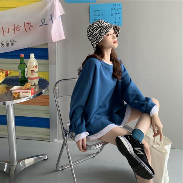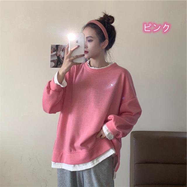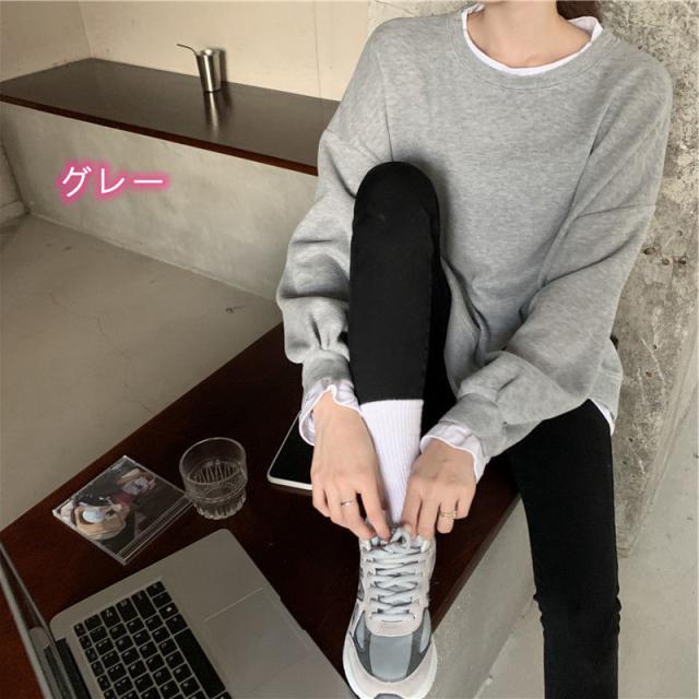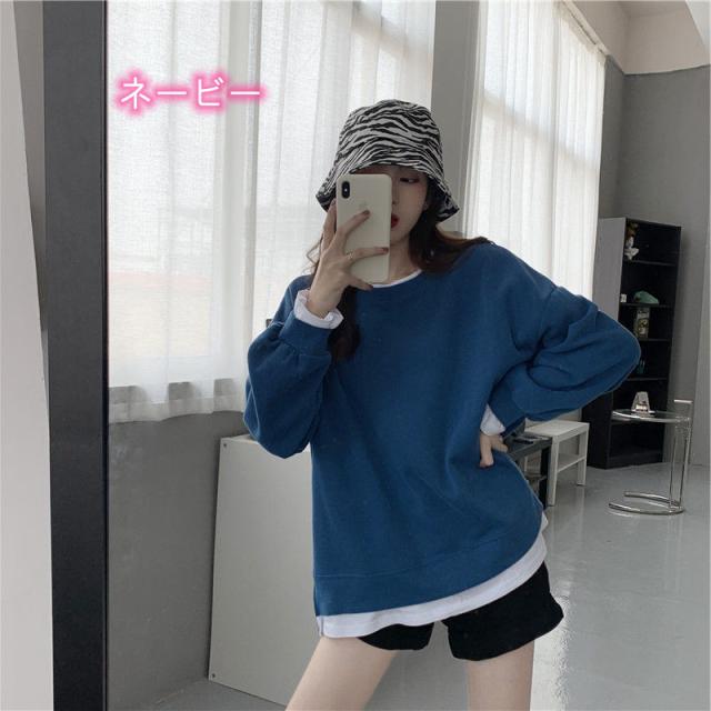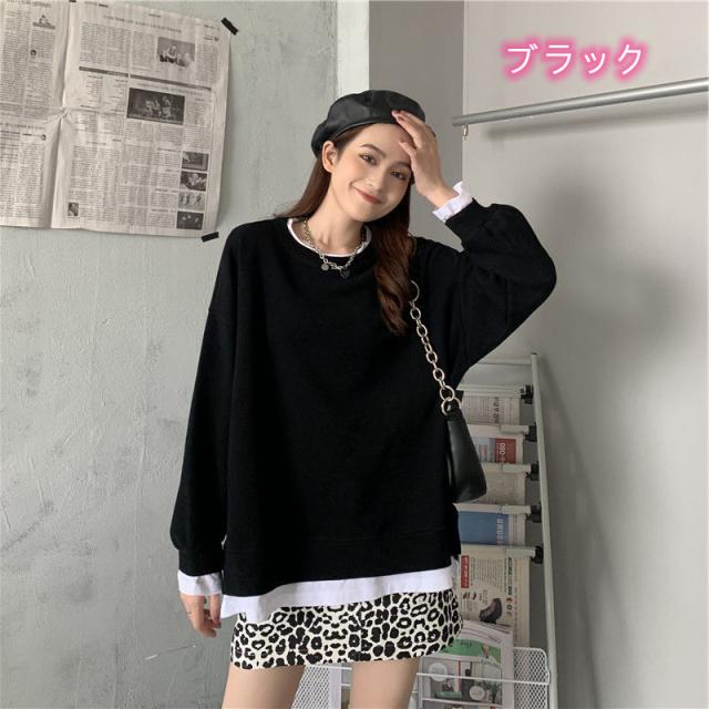 スウェットトレーナー カットソー 長袖 体型カバー ラウンドネック レイヤード カジュアル 韓国ファッション 大きいサイズ 大きめ ラウンドネック おしゃれ スウェット トップス 秋 冬 ルームウェア 部屋着