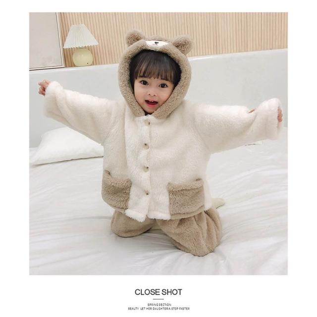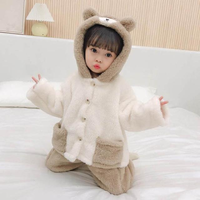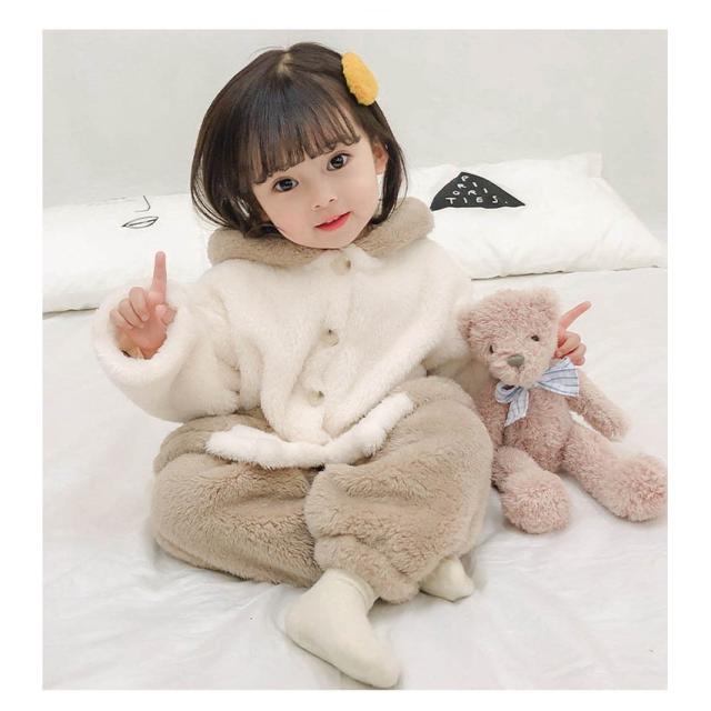 パジャマ キッズ 韓国子供服 女の子 冬 ルームウェア 厚手 パジャマ モコモコ 可愛い 長袖 フランネル セットアップ 部屋着 柔らかい 防寒着 秋冬