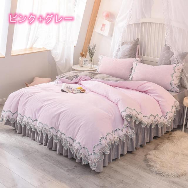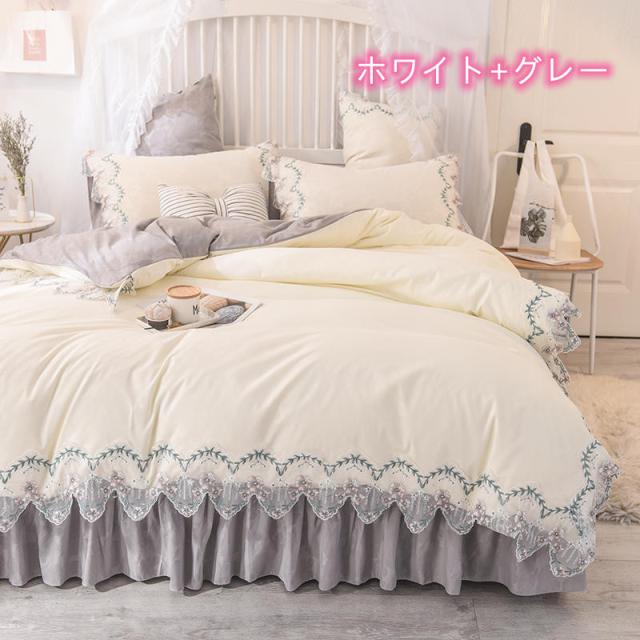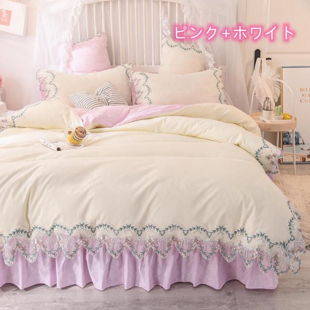 布団カバーセット 3点セット セミダブル シングル花レース 姫系 ベッドスカート 寝具カバー 4点セット きれいめ フラットシーツ 枕カバー 布団カバー 可愛い オシャレ 掛け布団カバー やわらかい 安心 清潔 肌触り 快眠 マットレスカバー