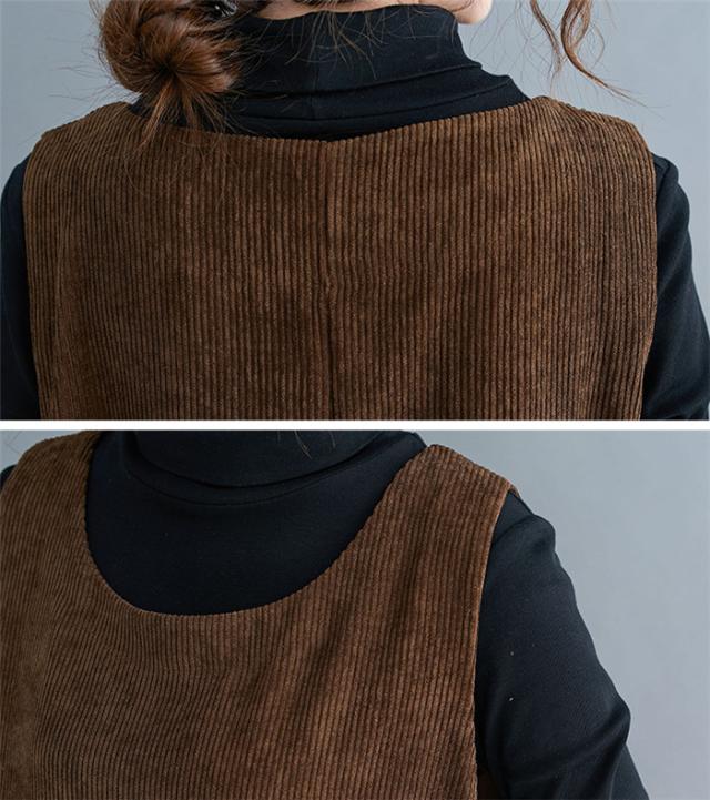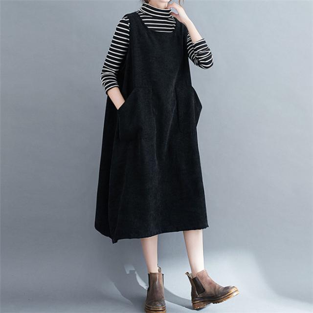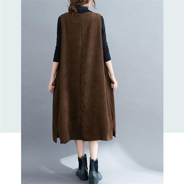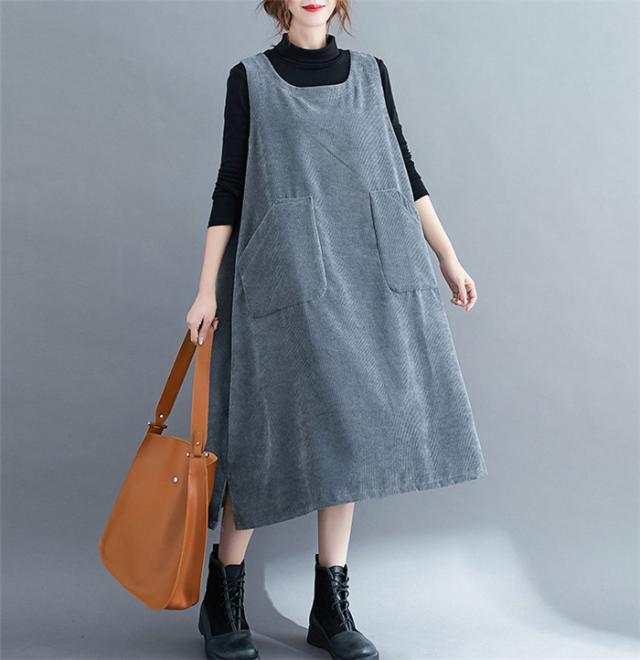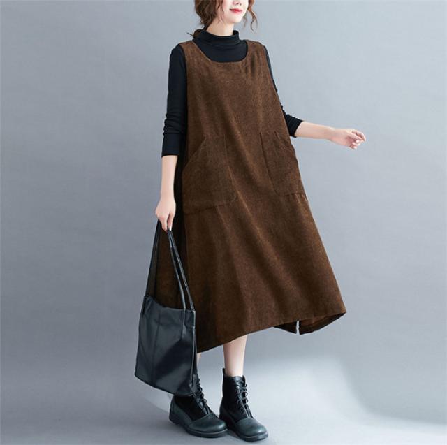 ロングジャンパースカート レディース aライン 30代 40代 ノースリーブワンピース 無地 重ね着 コーデュロイ ナチュラル スリット カジュアル 大人 通勤