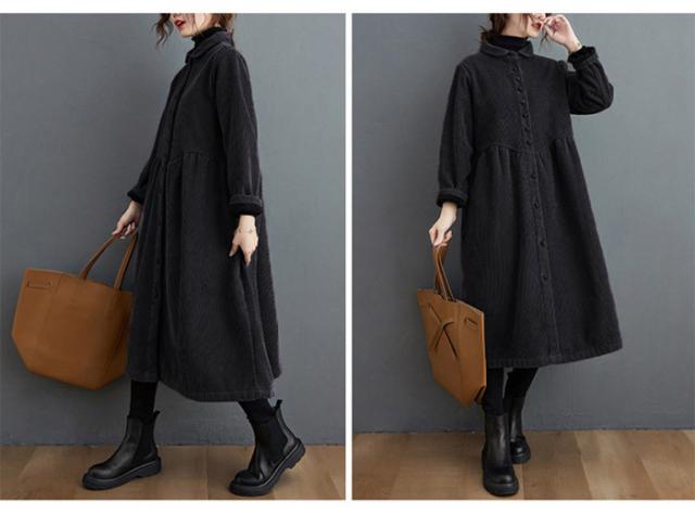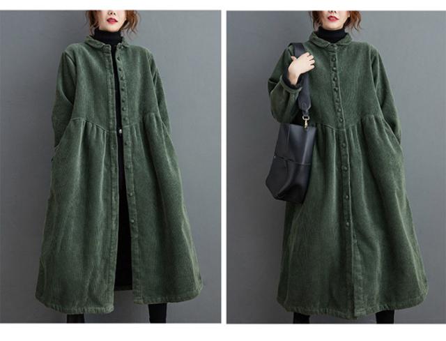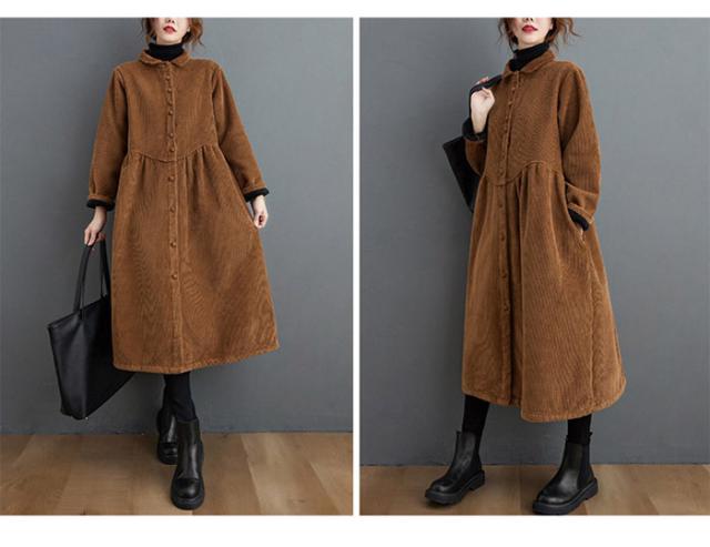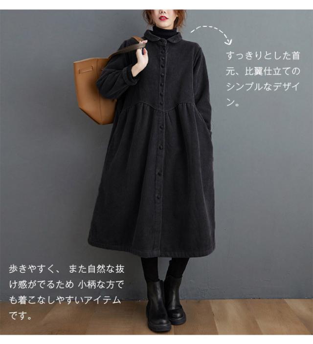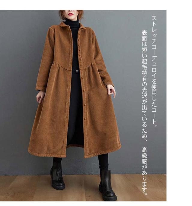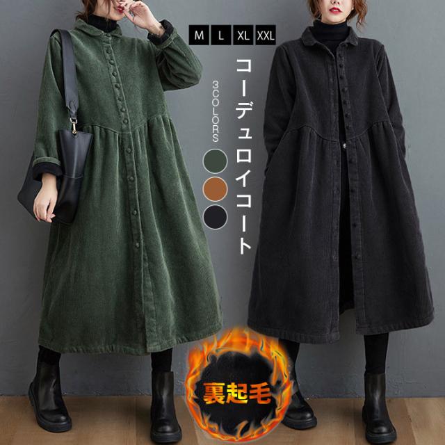 コーデュロイコート ロング丈 コート レディース ジャケット アウター 長袖 ロングコート ボア 裏ボア 裏起毛 コーデュロイ 防寒 厚手 大きいサイズ