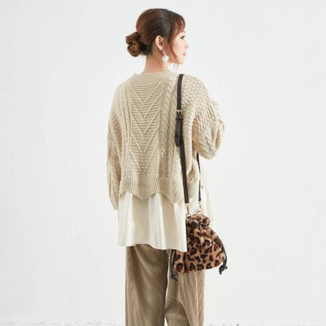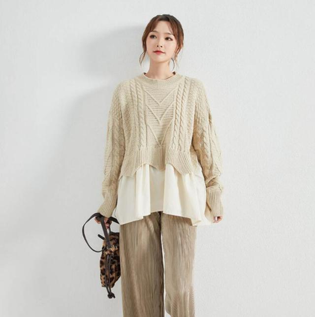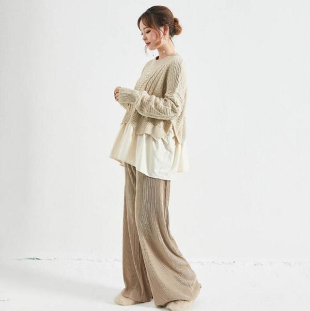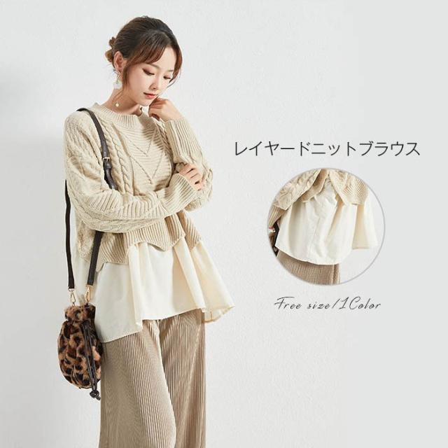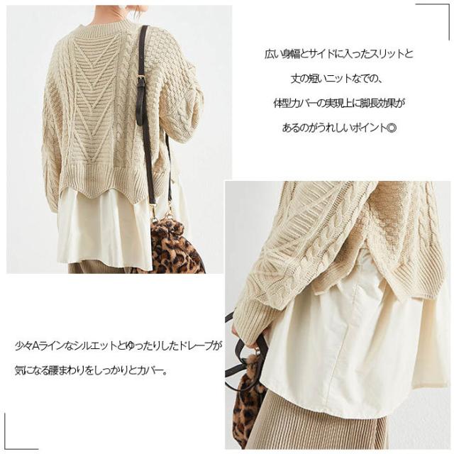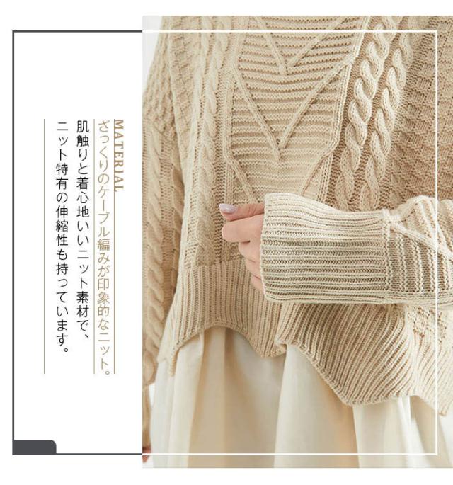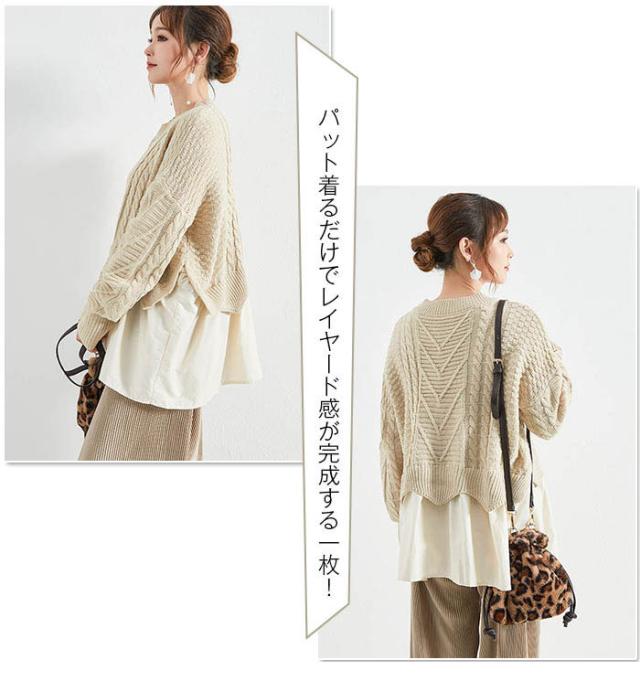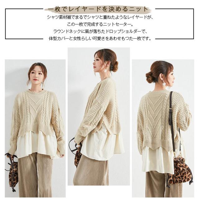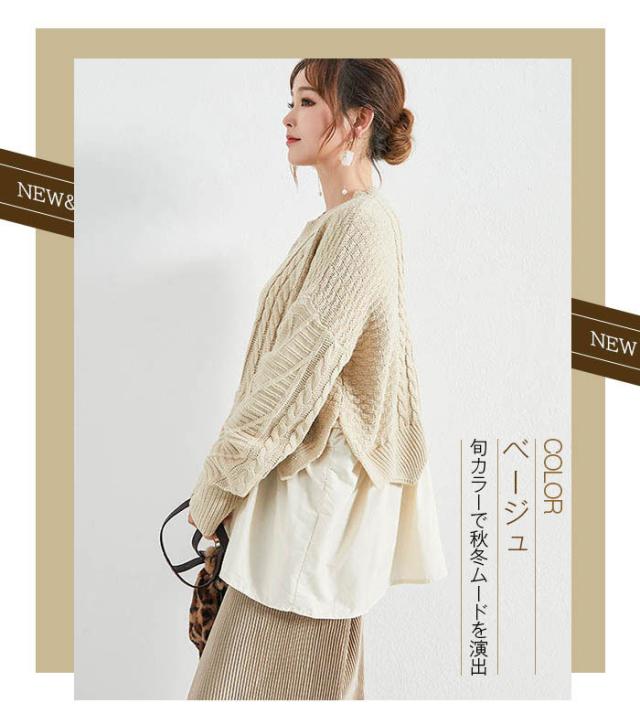 ニット セーター ケーブルニット ニットセーター トップス レディース 冬 レイヤード プルオーバー ニット 丸襟 ラウンドネック ケーブル編み ニットソー