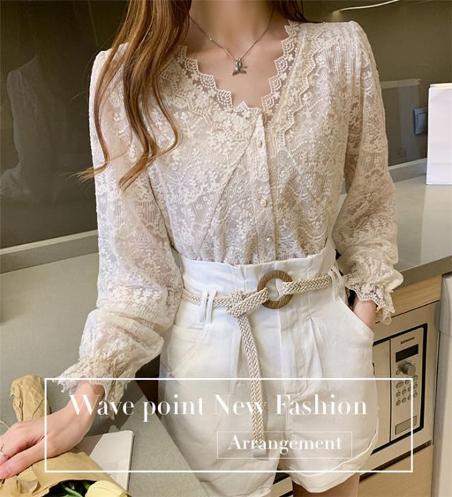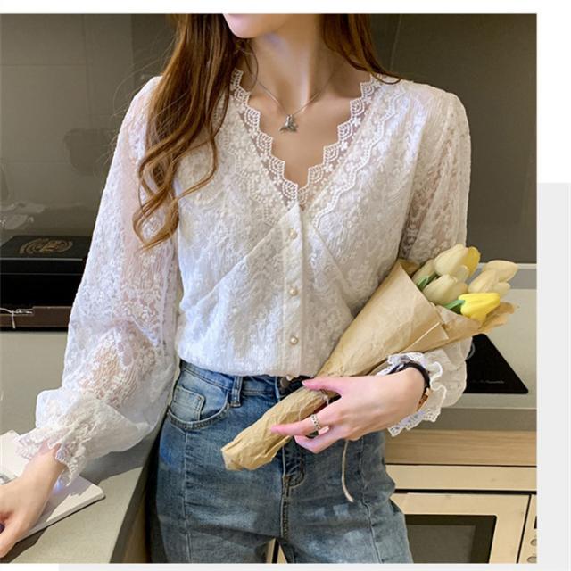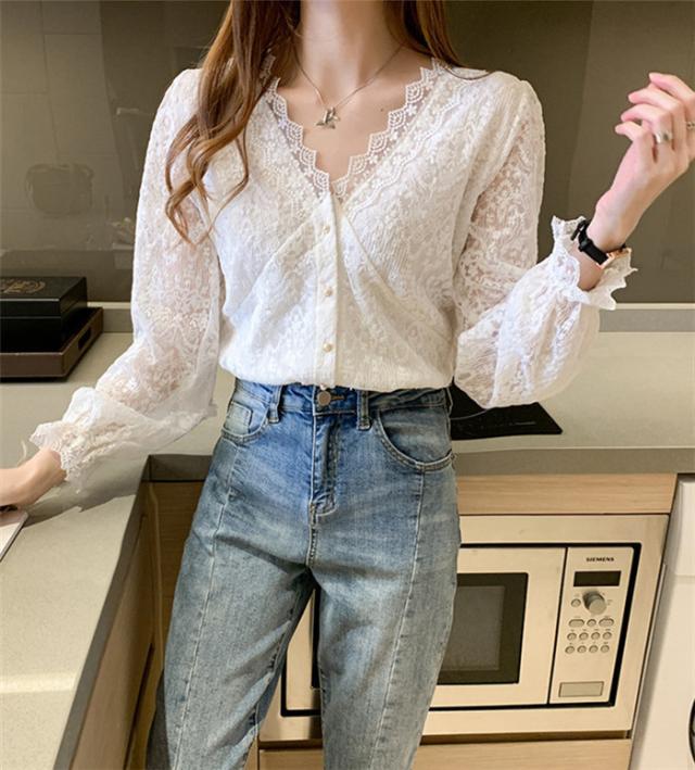 総レースブラウス レディース ブラウス トップス 刺繍 レースブラウス レース vネック 長袖 大きいサイズ トップス カジュアル おしゃれ 可愛い 透け 春秋 40代