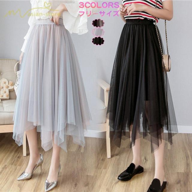 スカート パウスカート プリーツスカート プリーツフレア 裏地付き 2020新制作 夏コーデ カジュアル ウエストゴム デイリーコーデ ハイウエスト フリーサイズ