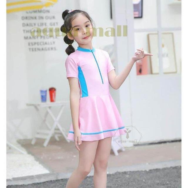 女の子 水着 体型カバー ワンピース 水着 半袖スポーツウエア お姫様 キッズ 水着 子供 水着 全2色