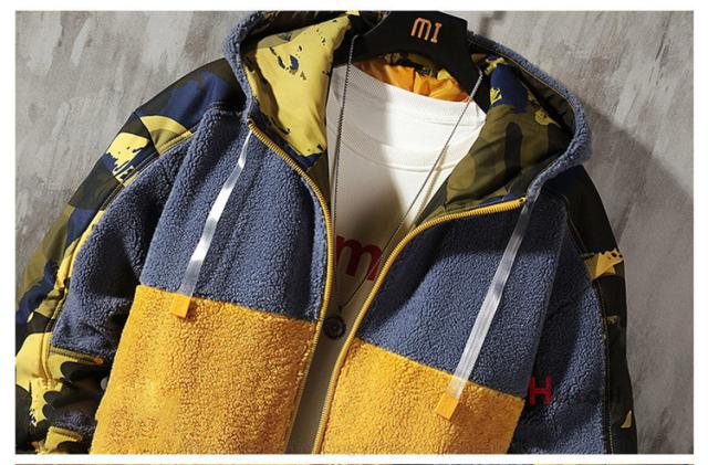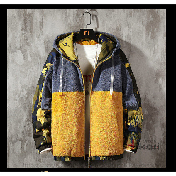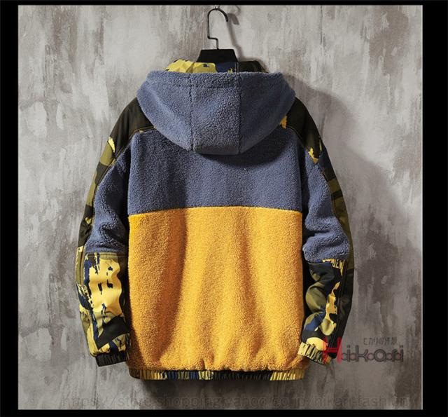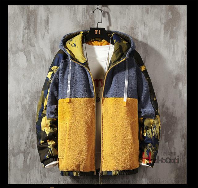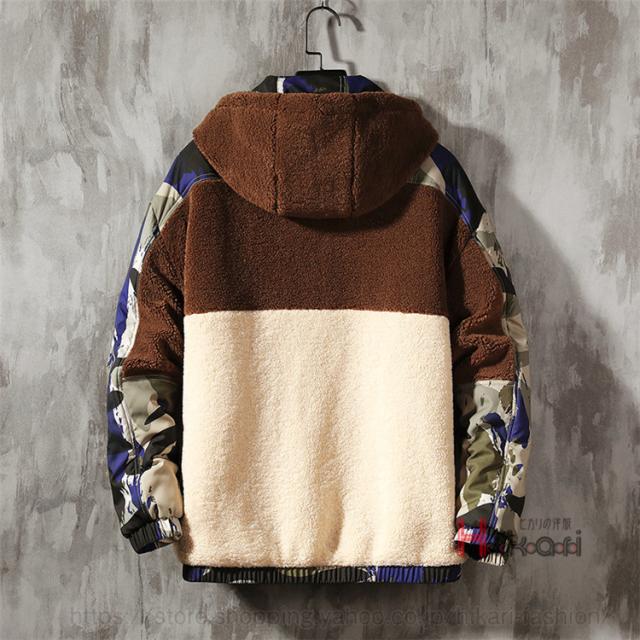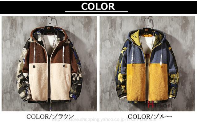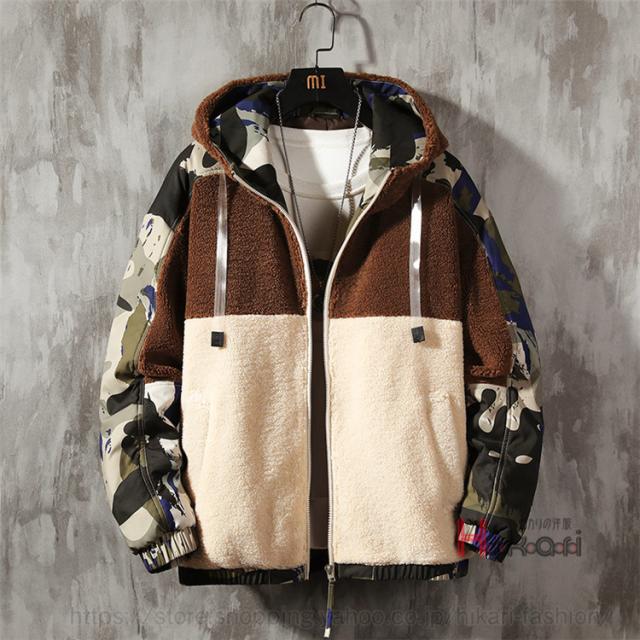 ボアジャケット メンズ ジャケット 迷彩柄 配色 切り替え 大きいサイズ フード付き ワークジャケット アウター
