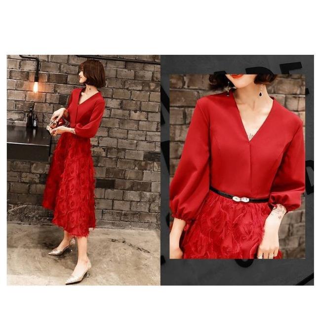 パーティードレス 結婚式 お呼ばれドレス 20代 30代 40代 袖あり ロング レース 黒ロングワンピース 大きいサイズ お呼ばれワンピース 成人式 同窓会 食事会