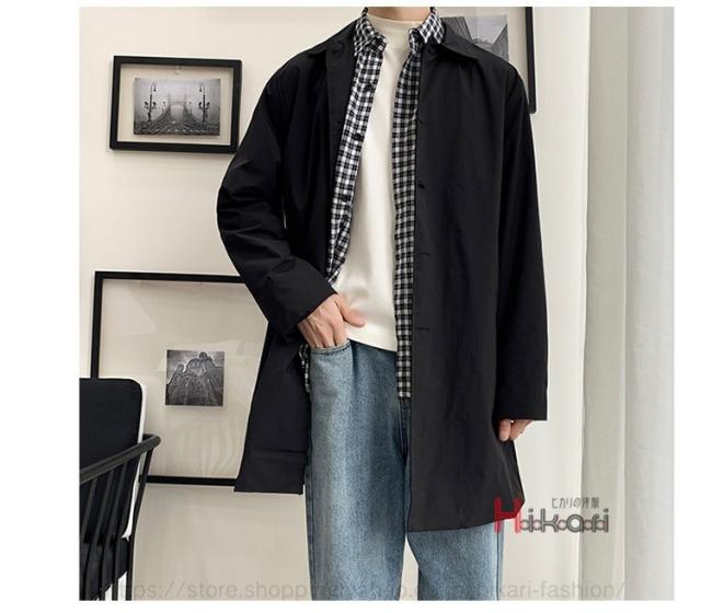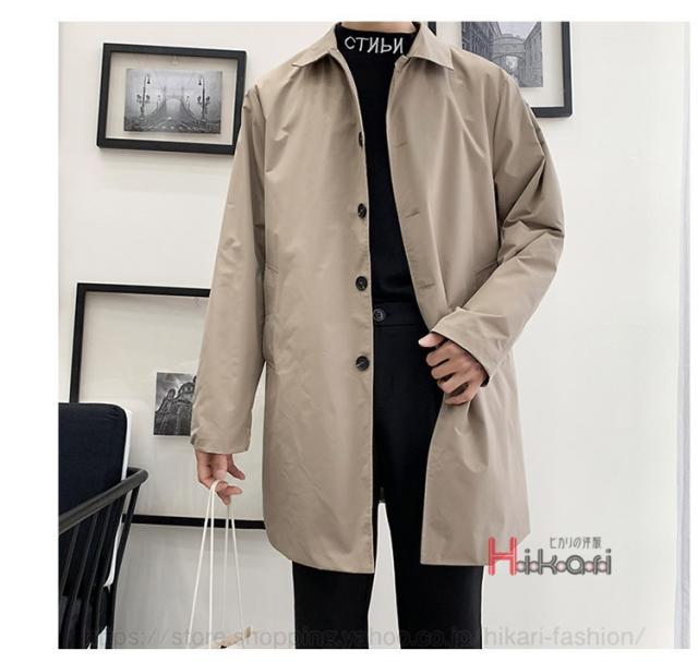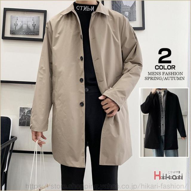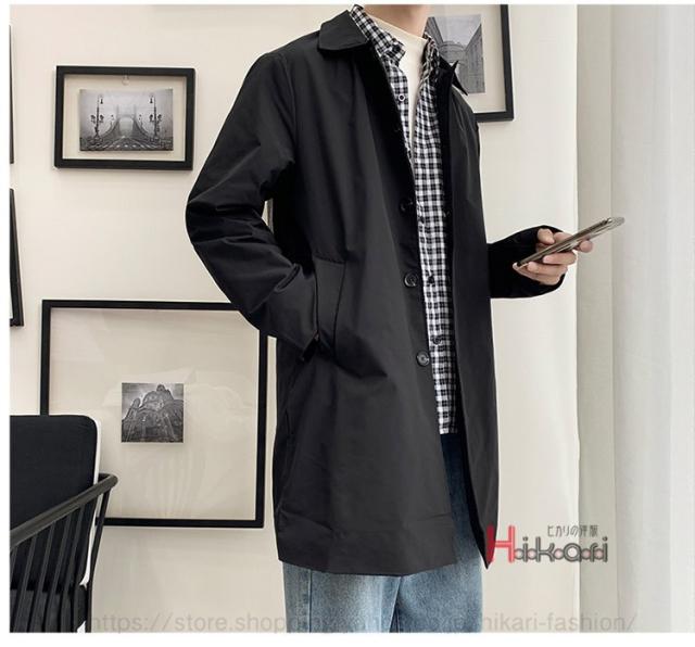 ステンカラーコート メンズ ビジネス スプリングコート 無地 ハーフコート アウター おしゃれ 黒 ベージュ