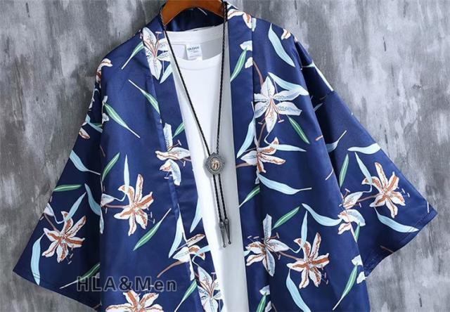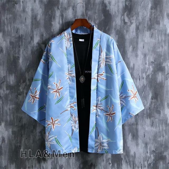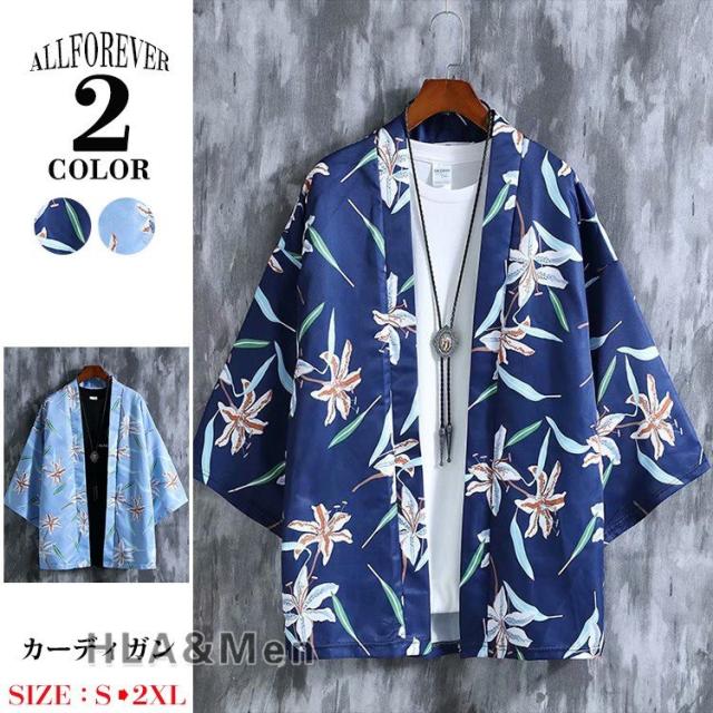 カーディガン 浴衣 メンズ 甚平 ジャケット はおり 総柄 花柄 薄手 夏 サマー 七分袖 和服風 おしゃれ