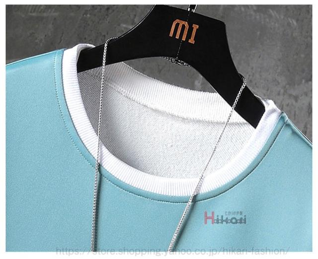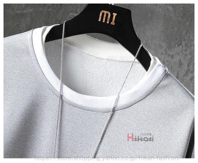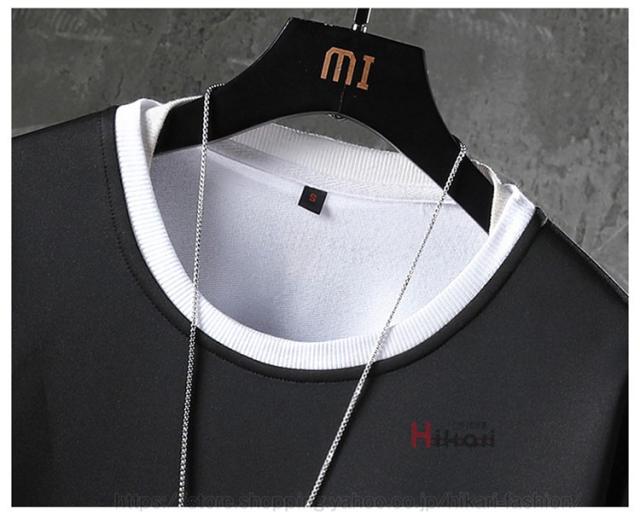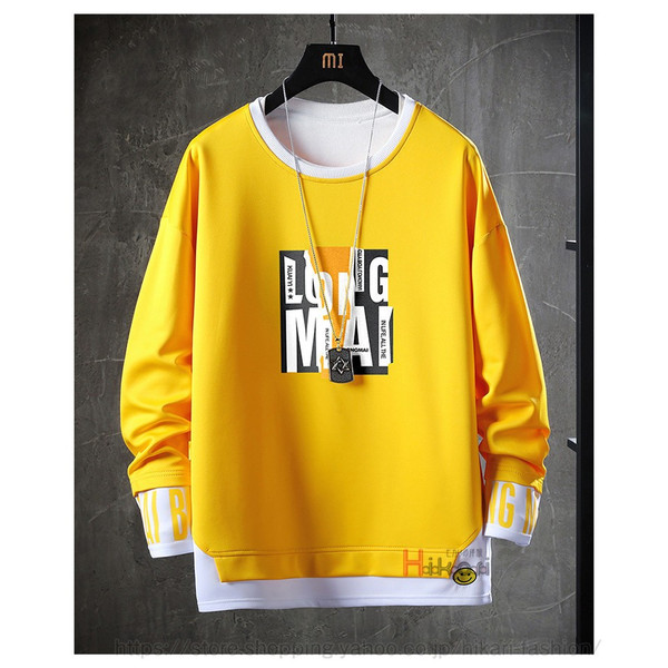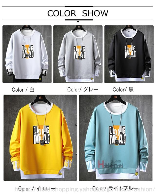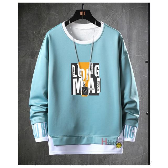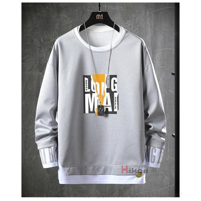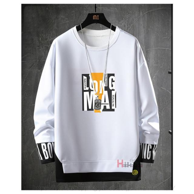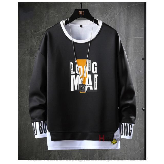 春物 トレーナー メンズ 切り替え 長袖 プルオーバー トップス 春服 フェイクレヤード プリント 英字 お兄系