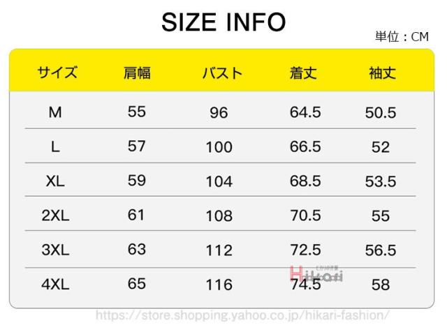 | サイズについての説明 | サイズ M L XL 2XL 3XL 4XL |