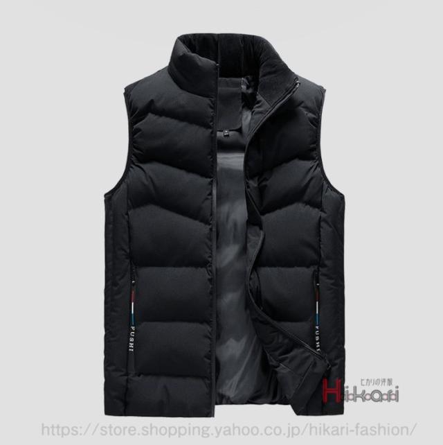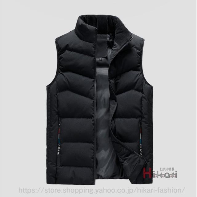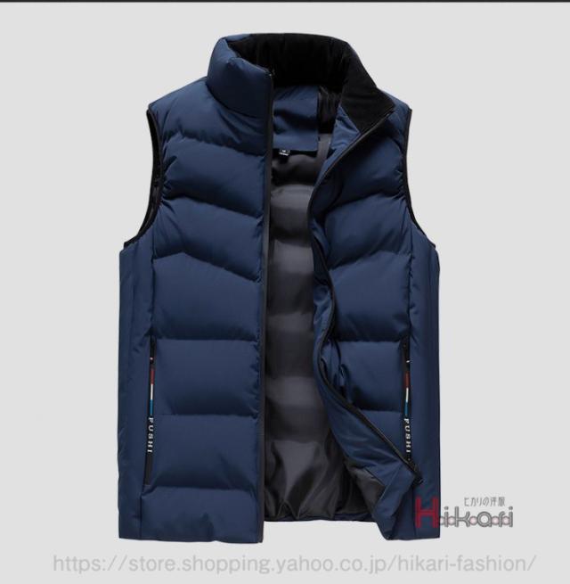 中綿ベスト メンズ ベスト キルティング スタンドカラー 厚手 防寒着 チョッキ ダウンベスト 無地 黒 ダークブルー