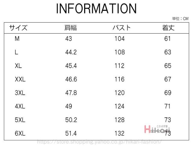 | サイズ | M L XL 2XL 3XL 4XL 5XL 6XL |