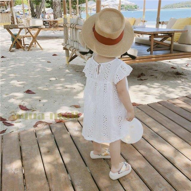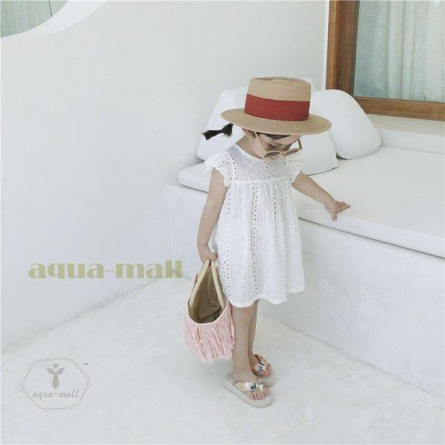 子供服 ワンピース 女の子 キッズ ワンピース 半袖 白ワンピ 膝丈 シンプル ガールズ 通学 通園 かわいい 春夏 お出かけ 90/100/110/120/130cm