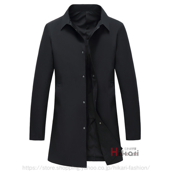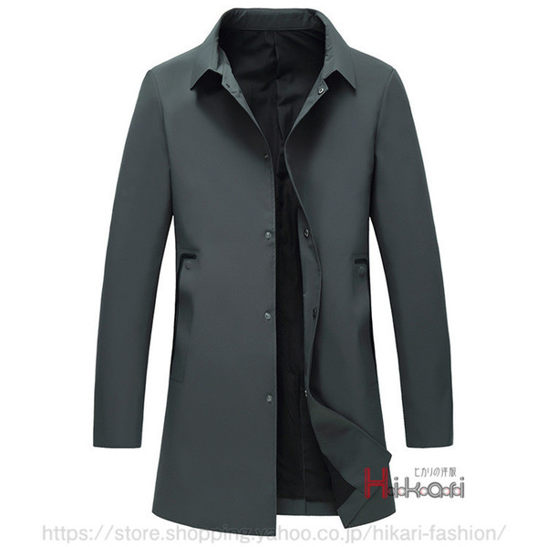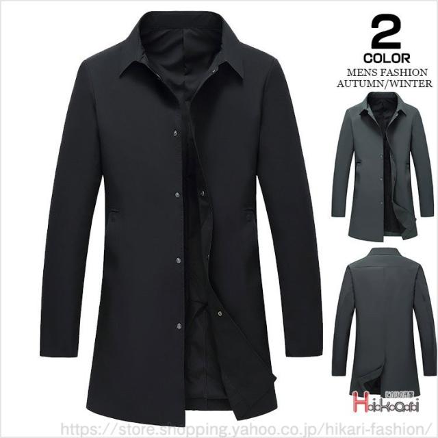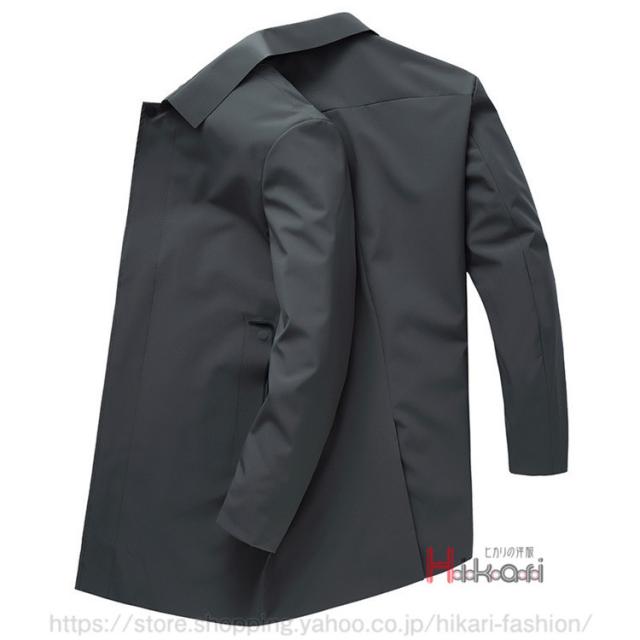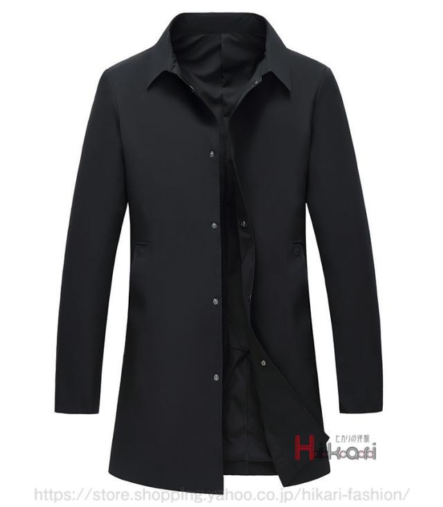 ステンカラーコート メンズ スプリングコート ロングコート ビジネスコート 通勤 メンズコート アウター 黒 ダークグレー