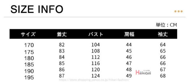 | サイズについての説明 | サイズ 170 175 180 185 190 195 |