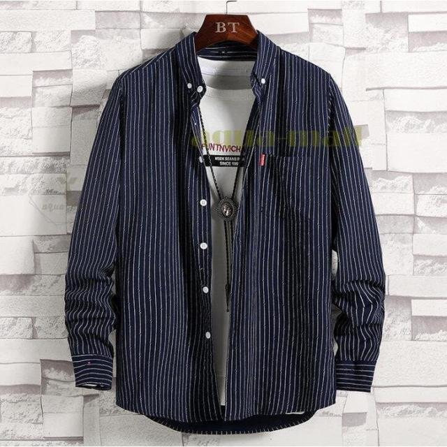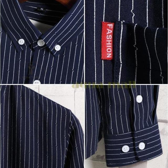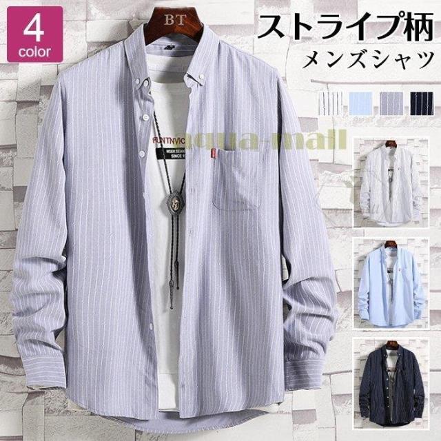 ビジネスシャツ カジュアルシャツ ストライプシャツ メンズ 長袖 ワークシャツ ボタンダウン 通勤 通学 春秋 新作
