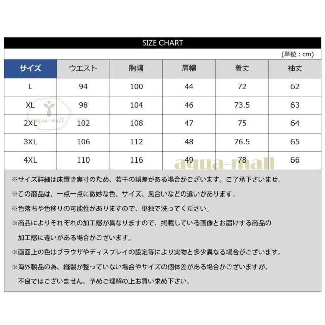 | サイズについての説明 | サイズL、XL、2XL、3XL、4XL |