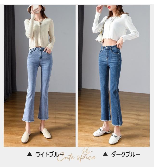 ジーンズ レディース デニムパンツ ラッパズボン ジーパン 九分丈デニムズボン ハイウエスト ワイドデニム 八分丈 着痩せ 春夏 秋 オシャレ 20代30代40代