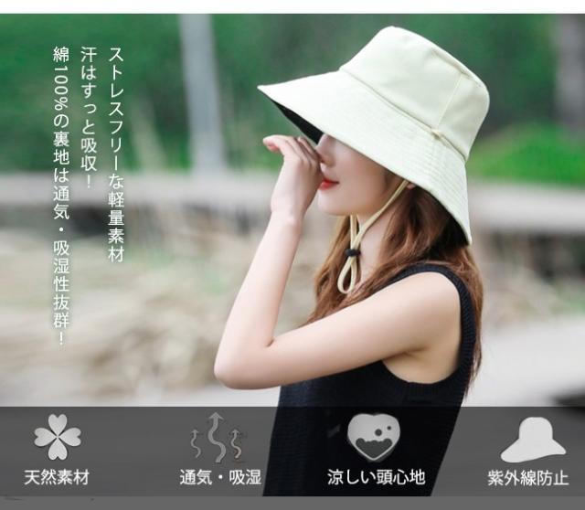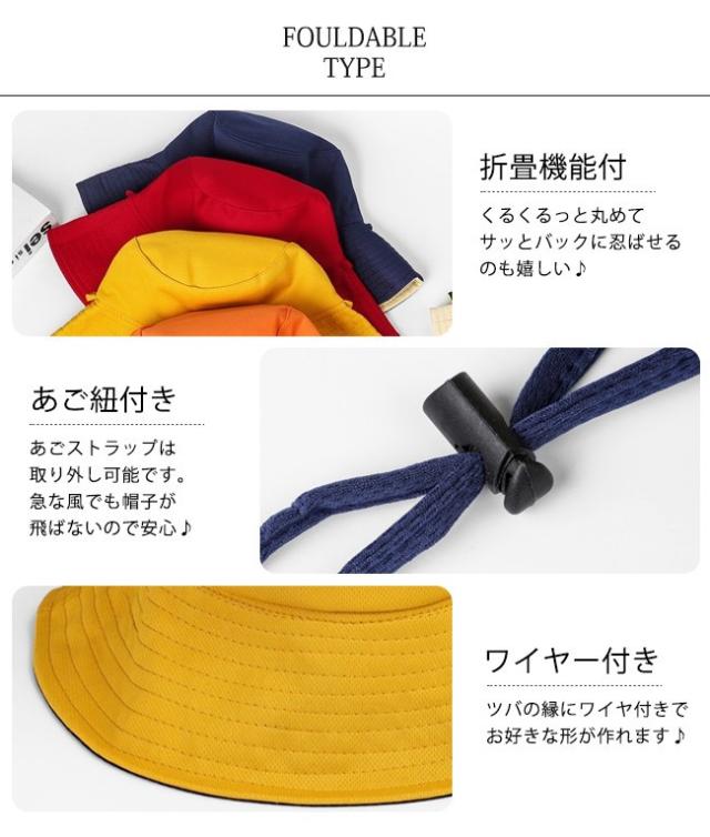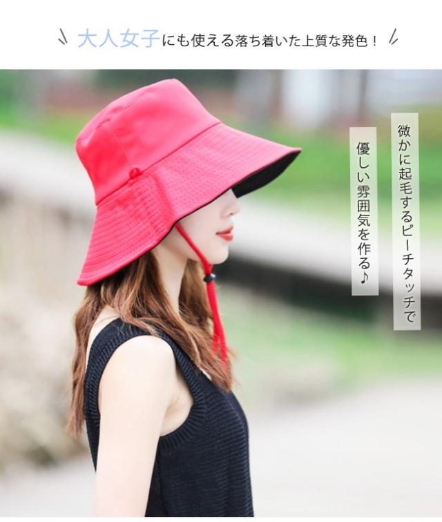バケットハット レディース 日よけ帽子 uvカット つば広 折りたたみ 紐付き 自転車 風で飛ばない おしゃれ 無地