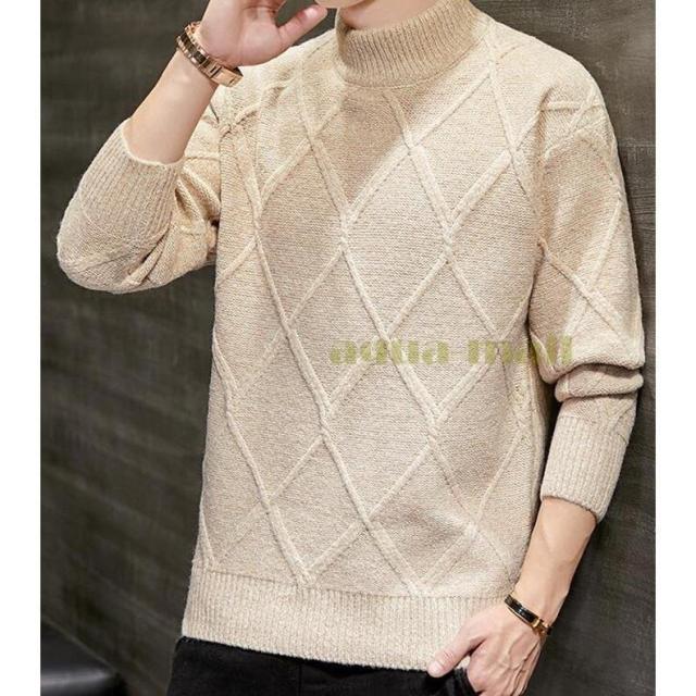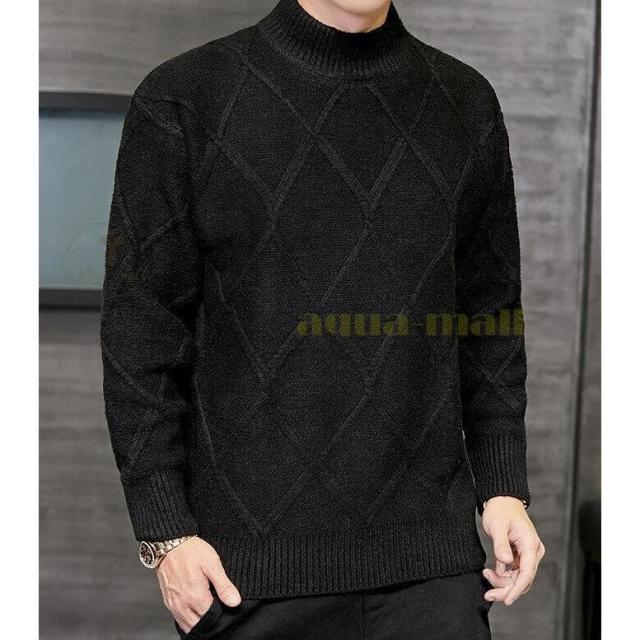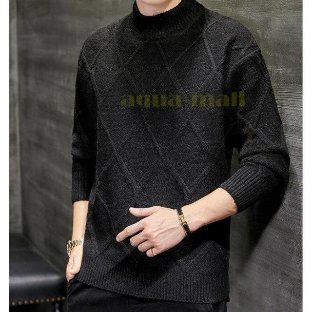 ニット カットソー メンズ 長袖 セーター 無地 トップス ニットソー 長袖 ハイネック プルオーバー カジュアル 秋冬 防寒 暖かい