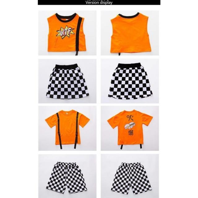 キッズダンス衣装 ヒップホップ セットアップ チェック Tシャツ チェックパンツ スカート 子供 男の子 女の子 チア ジャズダンス ステージ衣装 練習着