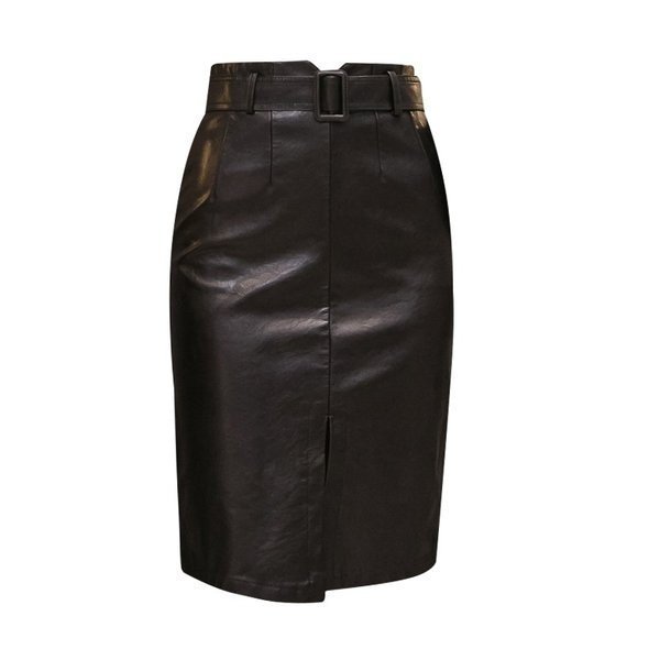 スカート タイトスカート PU革 レザースカート ボトムス スリット ハイウエスト レディース 膝丈スカート 着回し 美ライン