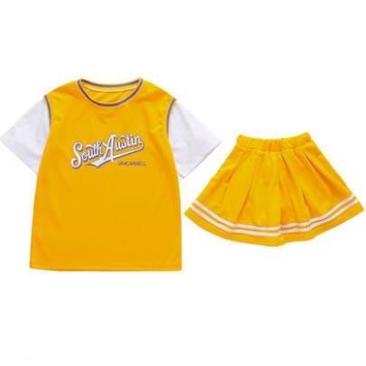 キッズダンス衣装 ヒップホップ チア セットアップ チアガール 子供 男の子 女の子 Tシャツ スカート ジャズダンス 練習着 応援団 運動会 体操服
