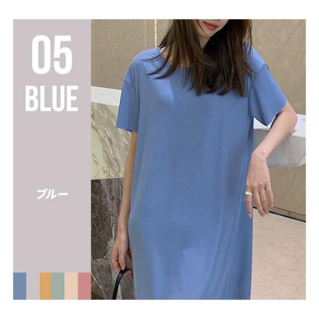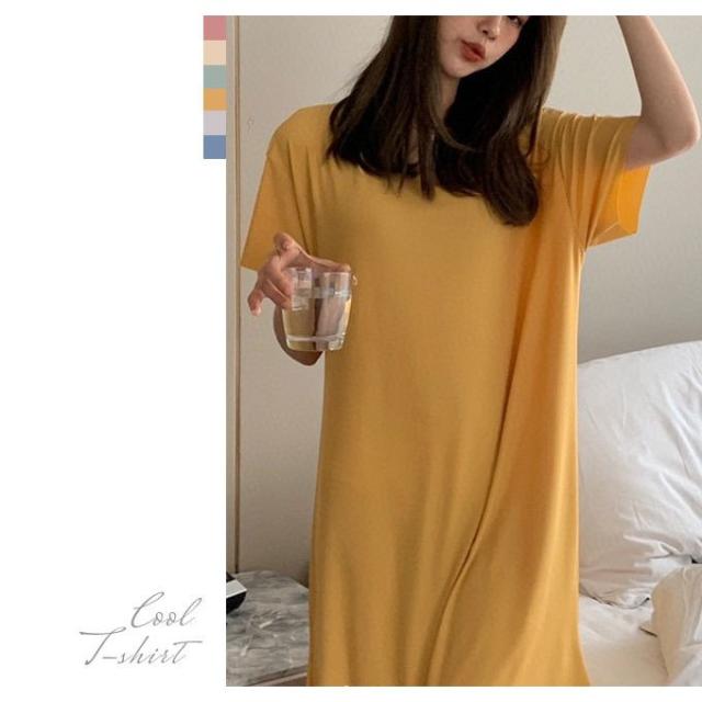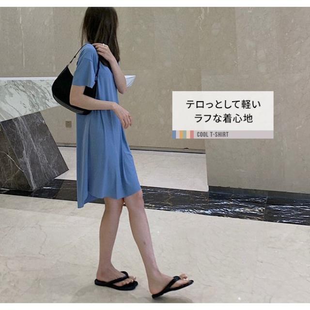 Tシャツワンピース 半袖 冷感 ロング 涼しい クール 夏用 接触冷感 部屋着 透け感 ストレッチ 通気性 快適 リラックス